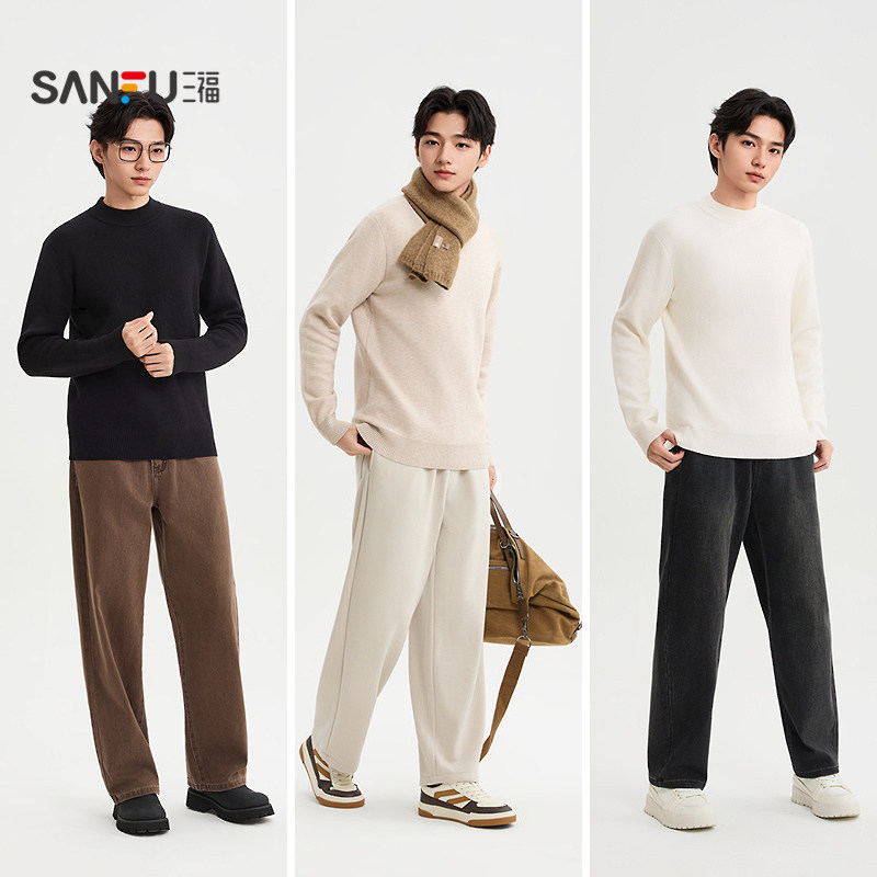 思诺芙德半高领山羊绒男装简约毛衣25秋冬新款针织休闲内搭打底衫