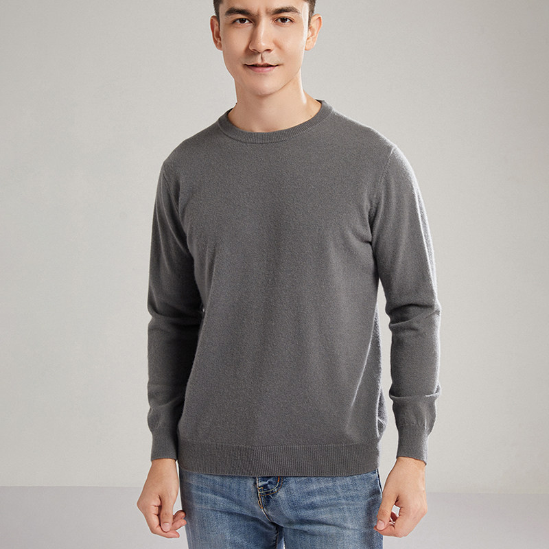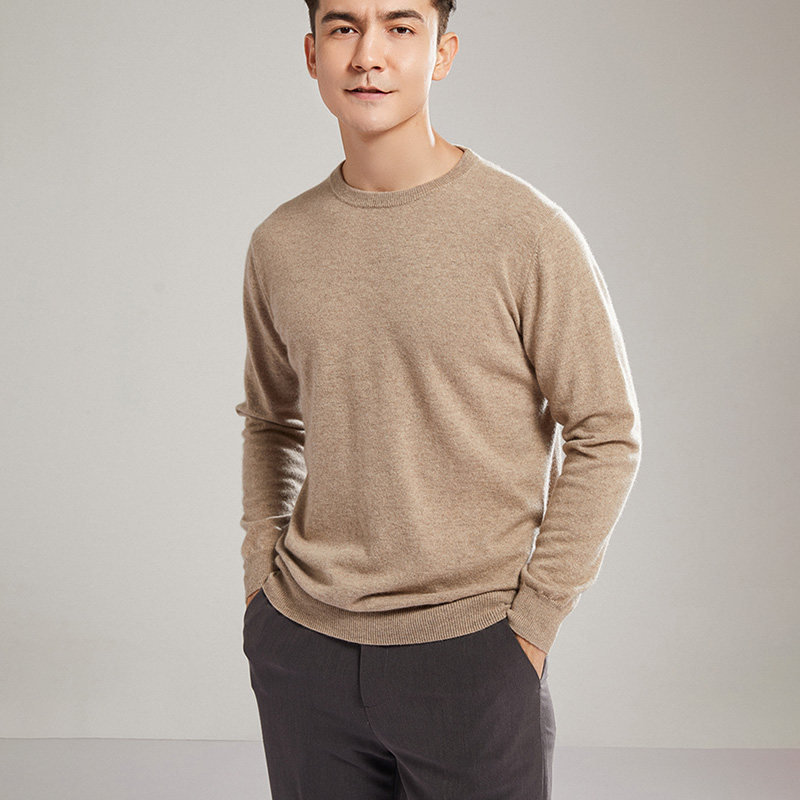 秋冬新款100%纯山羊绒衫男圆领长袖套头商务休闲宽松毛衣针织套衫