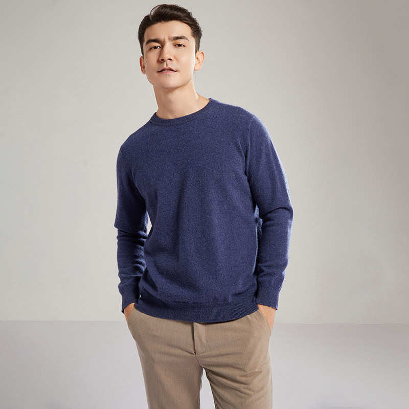 天秋冬新款100%纯山羊绒衫男圆领长袖套头商务休闲宽松毛衣针织套衫