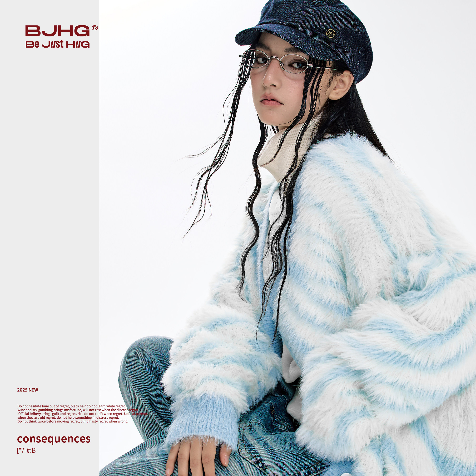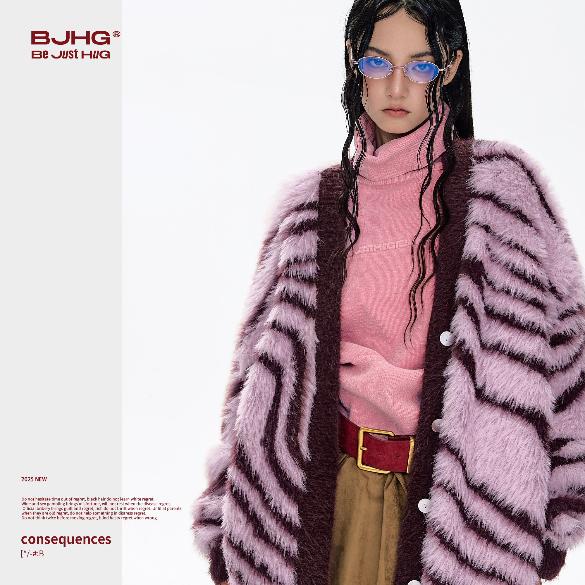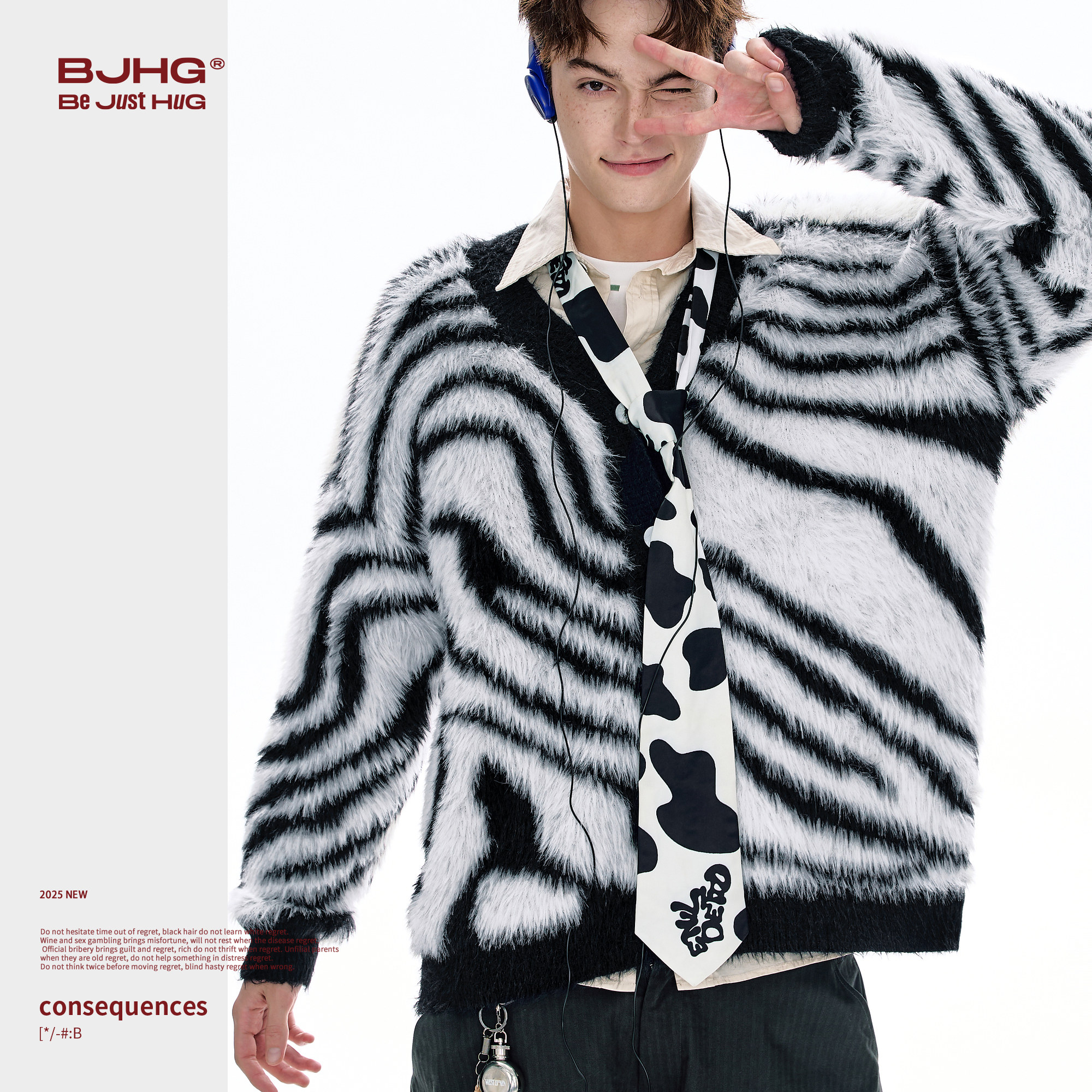 天猫BJHG不计后果仿貂毛毛衣男款冬季新款潮牌斑马条纹宽松开衫外套女