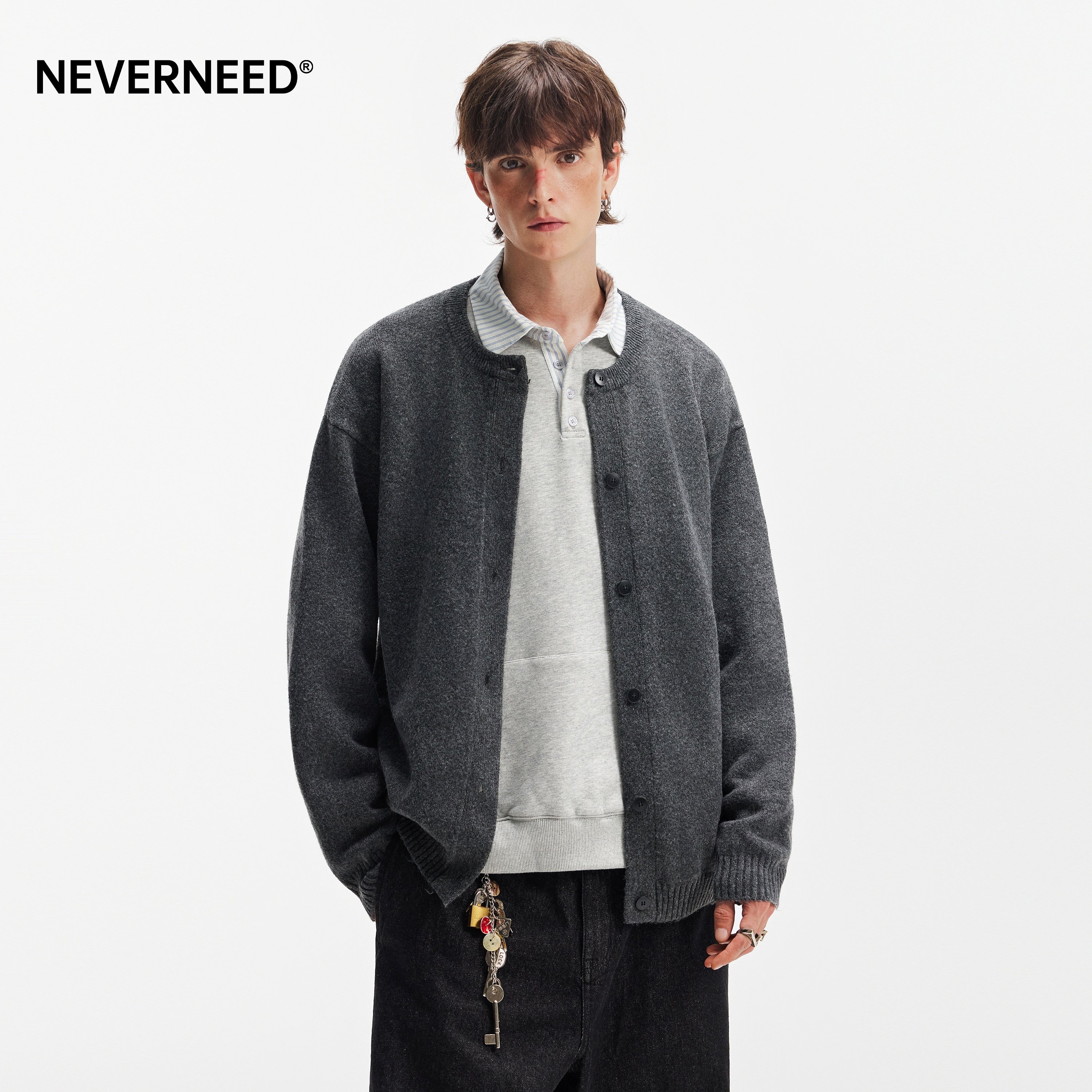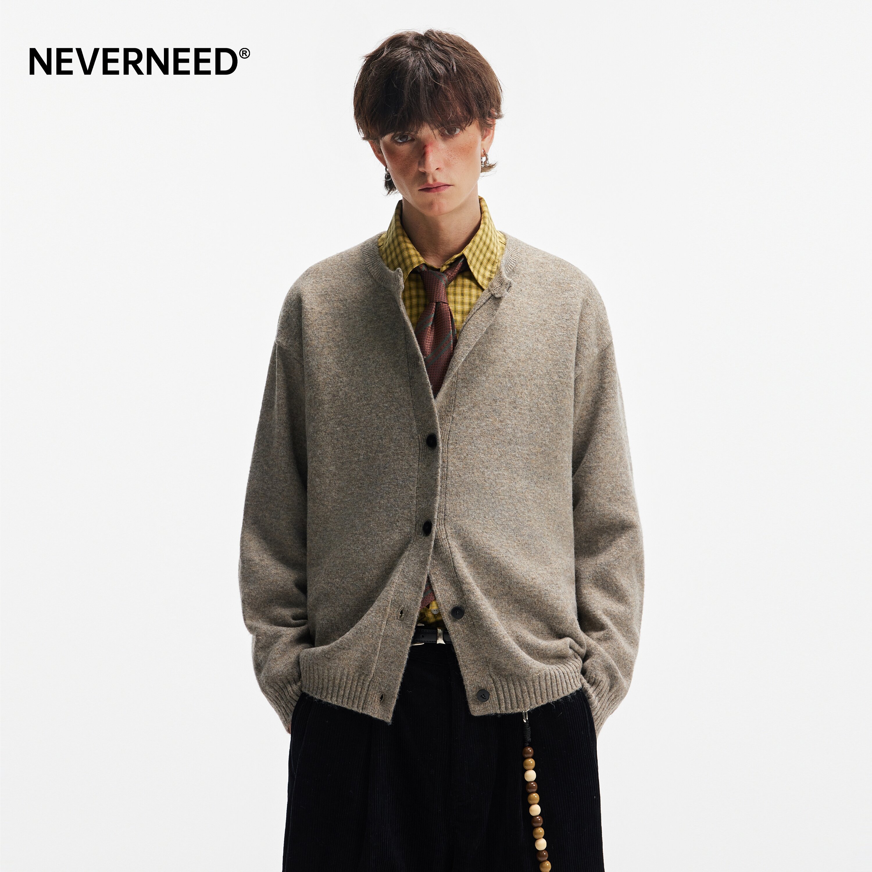 淘宝NEVERNEED复古box短款毛衣男女秋季美式绵羊毛慵懒风开衫针织外套