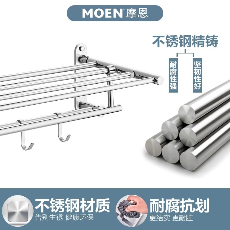 摩恩不锈钢浴巾架免打孔卫浴五金壁挂件卫生间毛巾架置物架套装