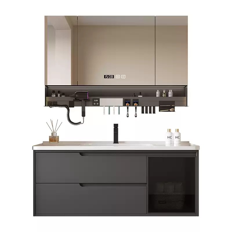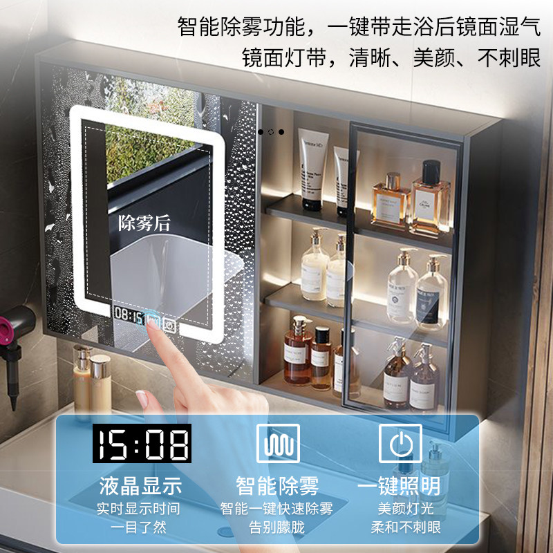 浴室镜柜挂墙式带置物架碳纤维卫生间镜子简约洗漱台收纳柜储物单