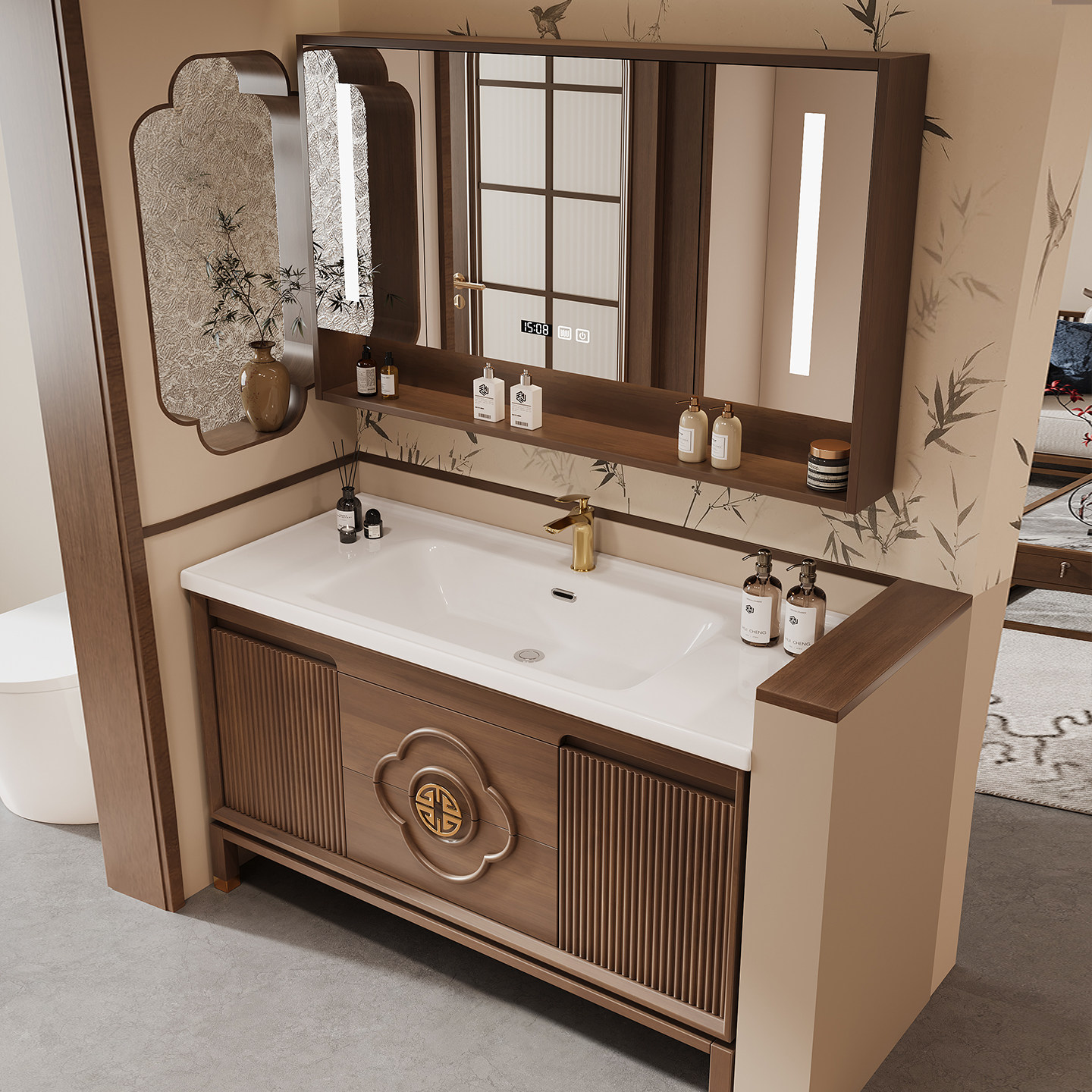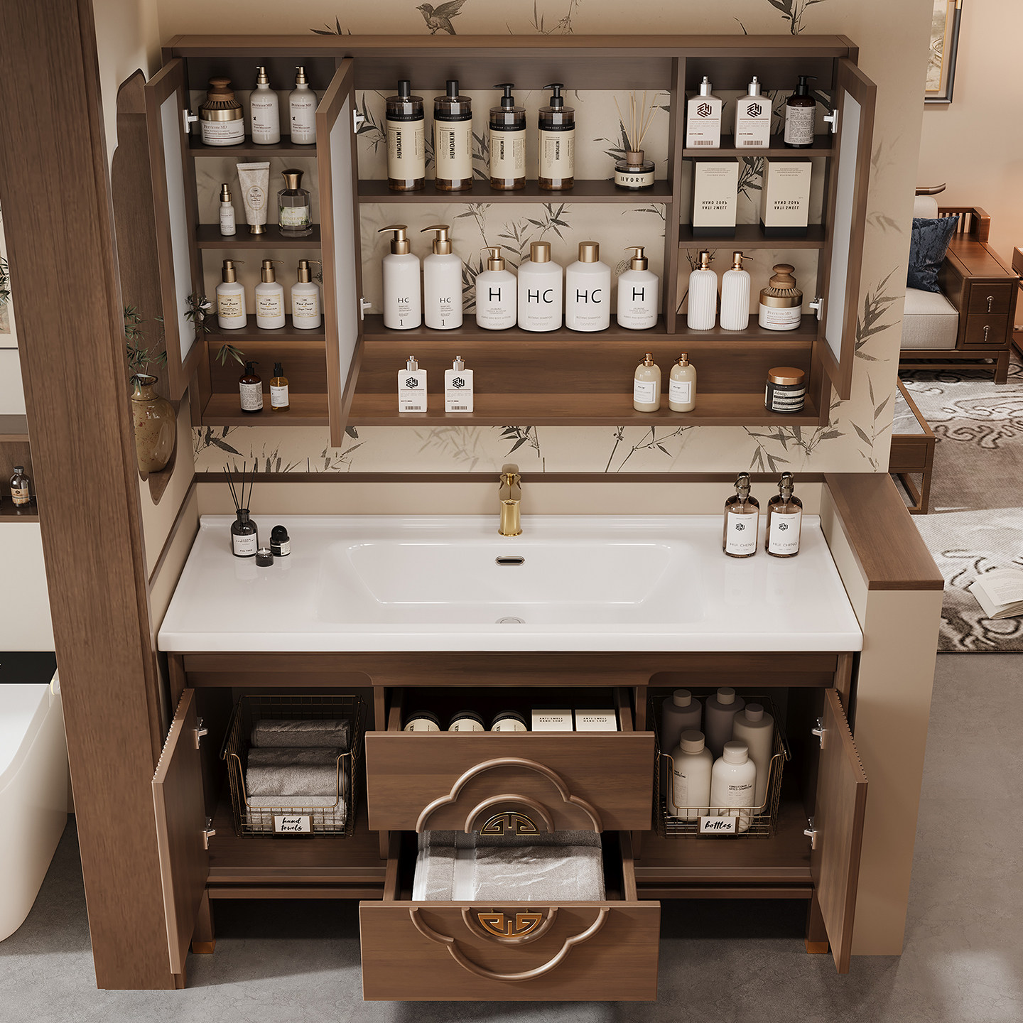 2025中古风陶瓷一体盆浴室柜卫生间洗漱台带收纳镜柜洗手洗脸台柜