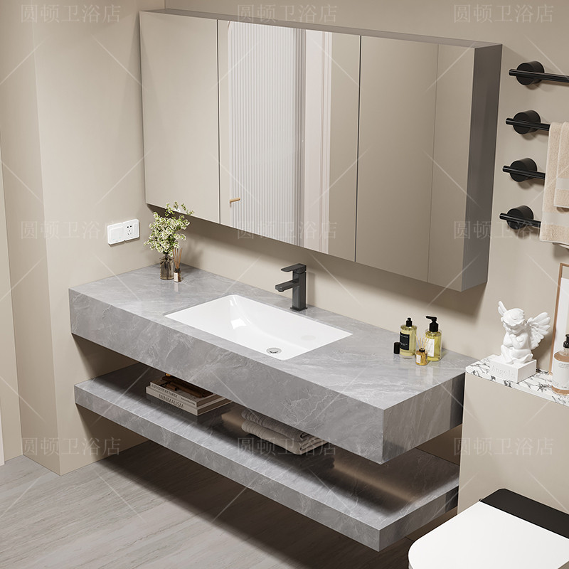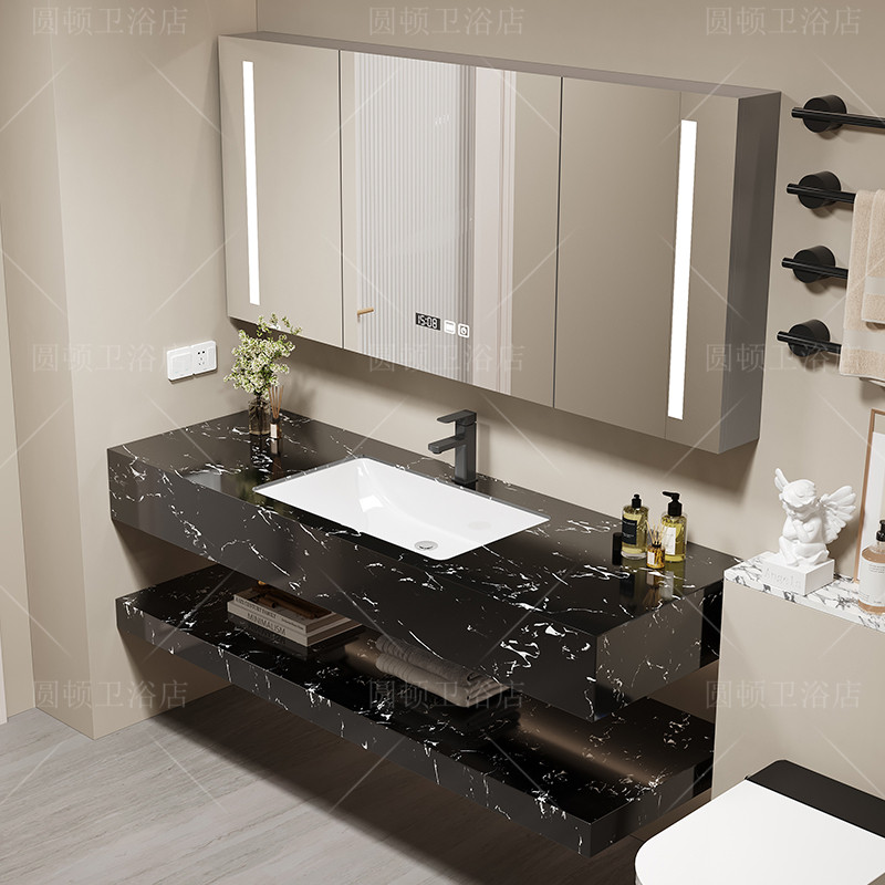淘宝新款轻奢简约双层大理石浴室柜组合酒店卫生间洗漱台洗手洗脸盆池
