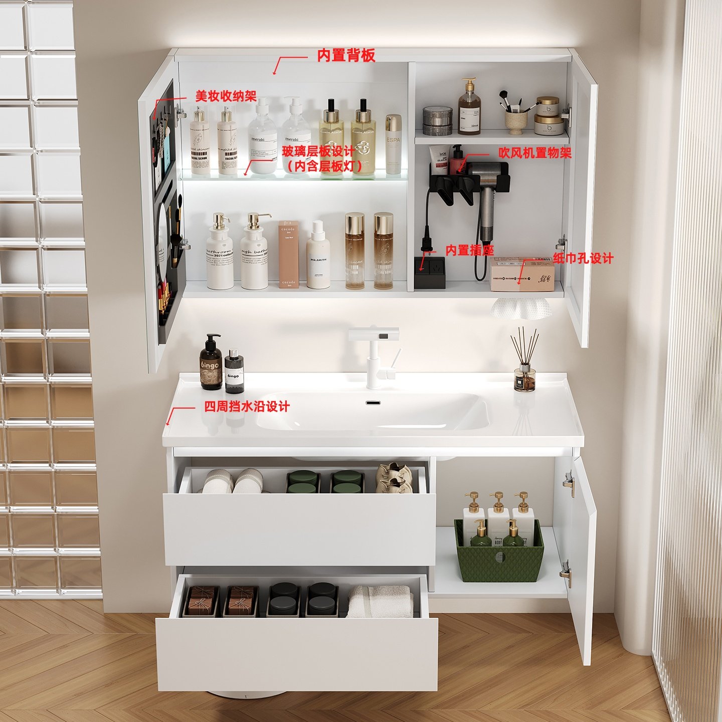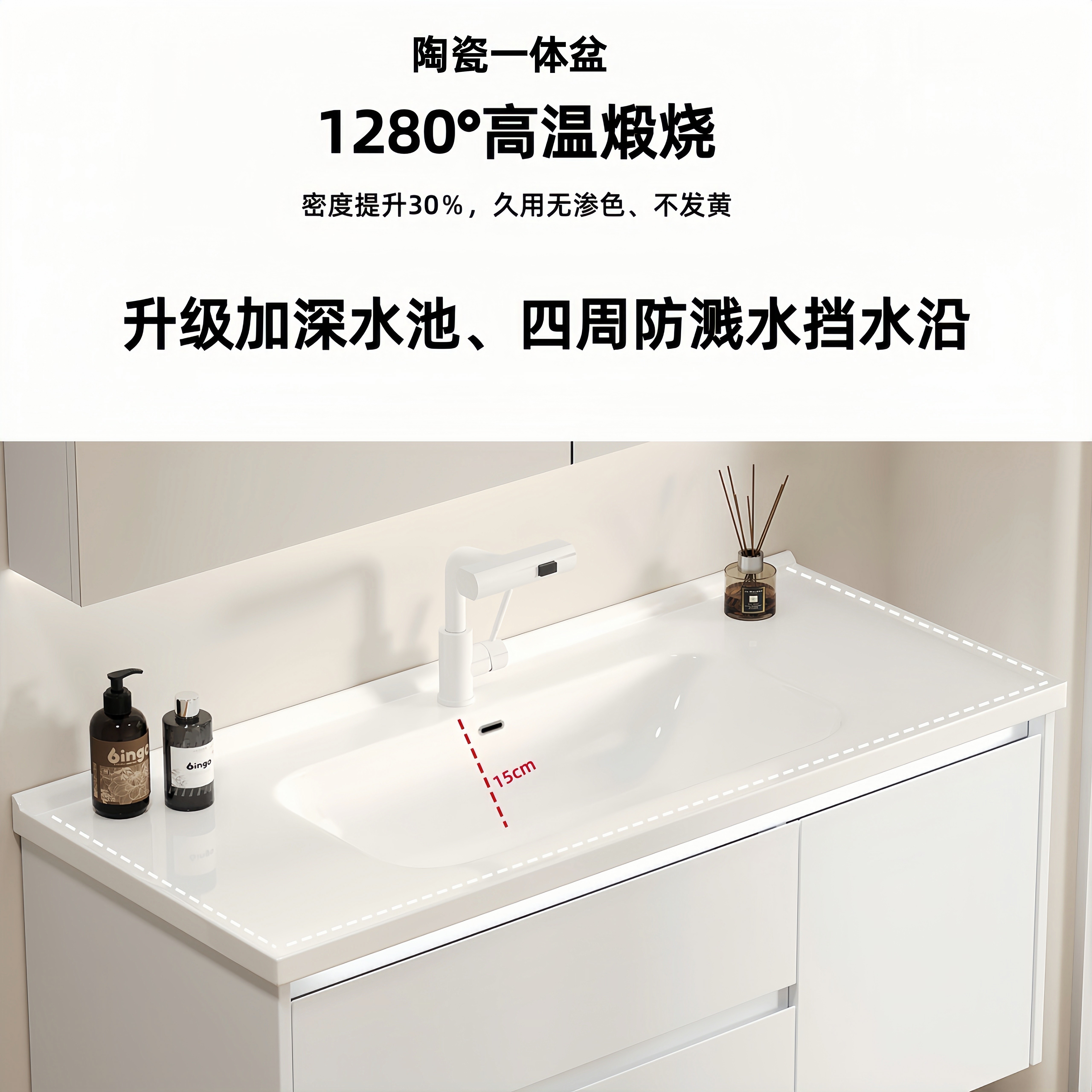 淘宝橡木浴室柜陶瓷一体洗脸盆柜组合卫生间岩板热弯洗手洗漱台卫浴柜