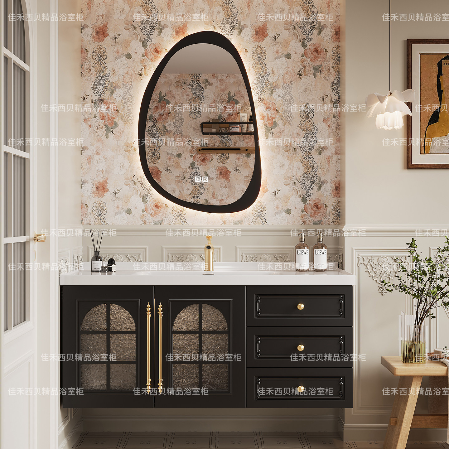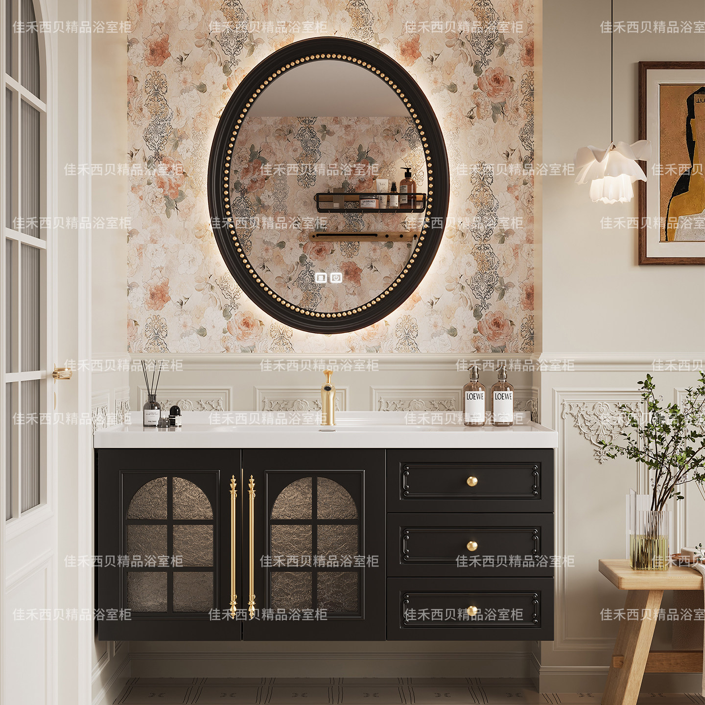 淘宝法式复古浴室柜组合卫生间陶瓷一体盆轻奢洗漱台实木洗脸池洗手盆
