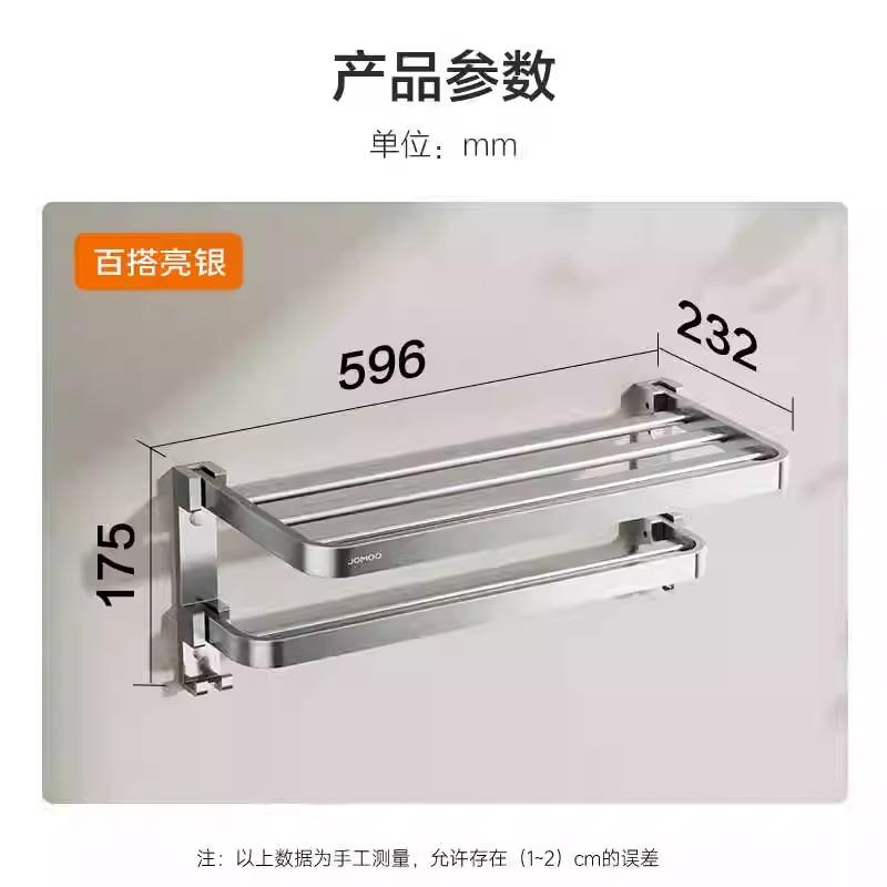 淘宝九牧毛巾架浴巾架卫生间浴室挂件卫浴五金双折叠置物架收纳杆挂钩