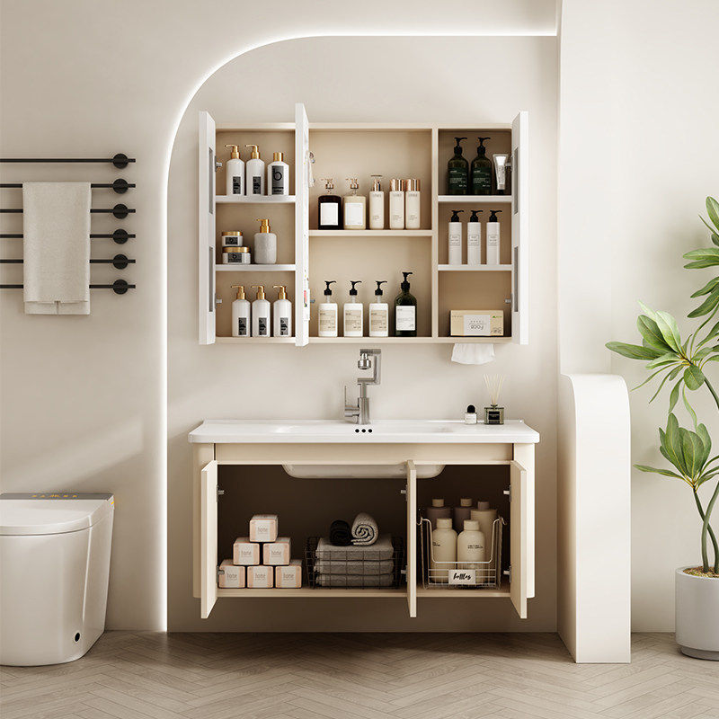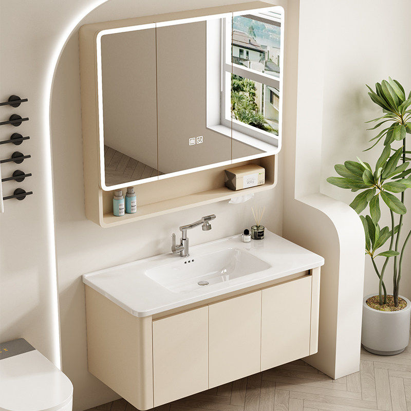 奶油风浴室柜组合陶瓷一体盆简约洗手池洗脸盆柜组合2025新款家用