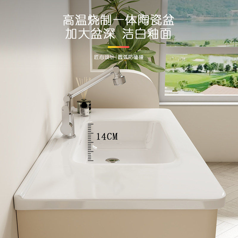 淘奶油风浴室柜组合陶瓷一体盆简约洗手池洗脸盆柜组合2025新款家用