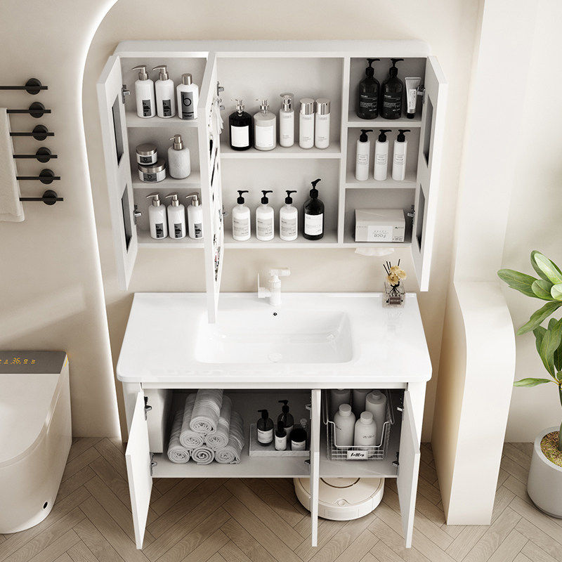 奶油风浴室柜组合陶瓷一体盆简约洗手池洗脸盆柜组合2025新款家用