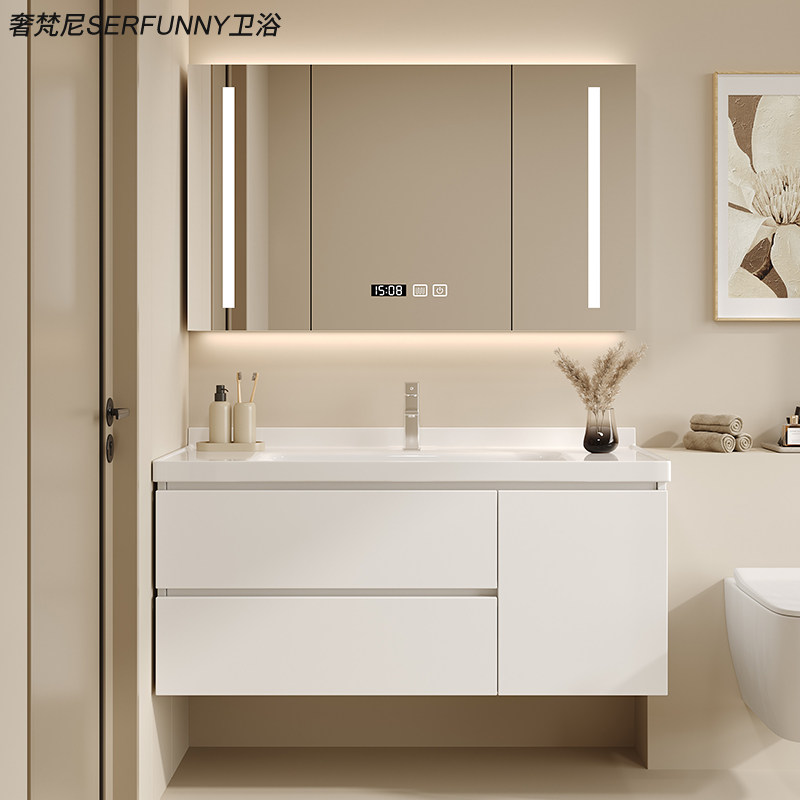 奶油风浴室柜组合陶瓷一体盆简约洗手池洗脸盆柜组合2025新款家用
