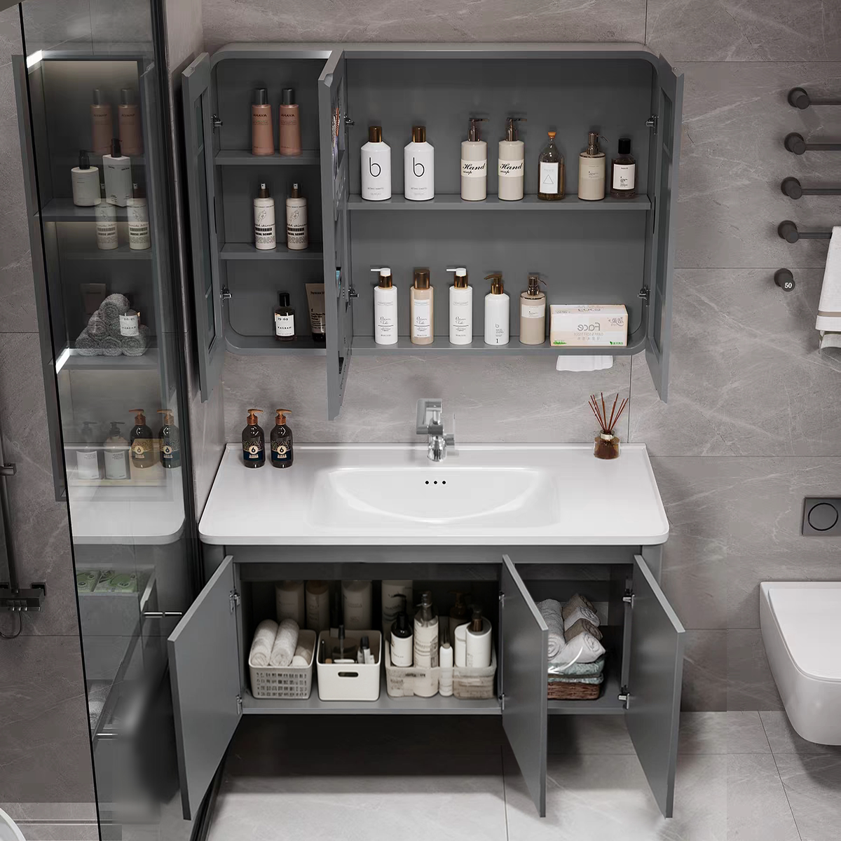 广东佛山卫浴柜以高品质陶瓷一体盆为核心,融合现代简约设计,打造实用与美观兼具的卫生间解决方案。产品涵盖洗漱台、浴室柜、马桶及侧边收纳系统,采用优质陶瓷材质,表面光滑易洁,防污抗菌。一体成型工艺无缝衔接,杜绝藏污纳垢,提升使用体验。侧边收纳设计巧妙利用空间,可存放洗漱用品,保持台面整洁。整体结构稳固耐用,适配多种装修风格,适用于家庭、酒店及公共场所。佛山作为“中国陶瓷之都”,凭借成熟产业链与精湛工艺,确保产品环保安全、经久耐用,是现代卫浴空间的理想之选。