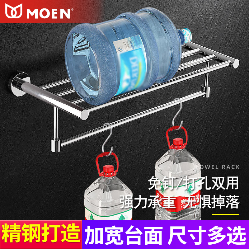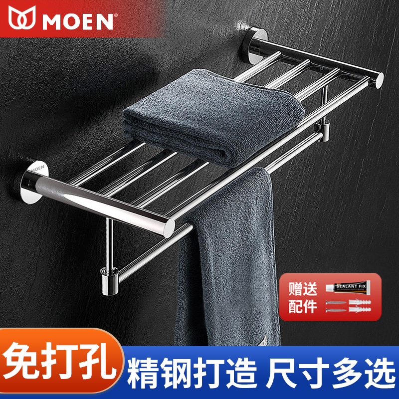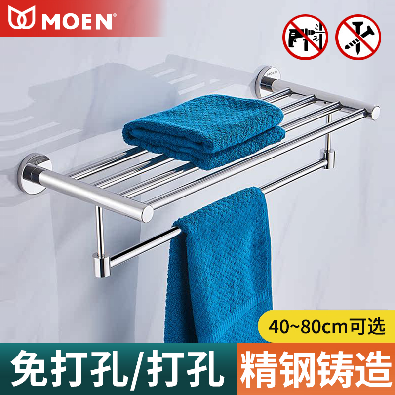 淘宝摩恩304不锈钢浴巾架卫生间免打孔毛巾架加厚 浴室厕所收纳置物架