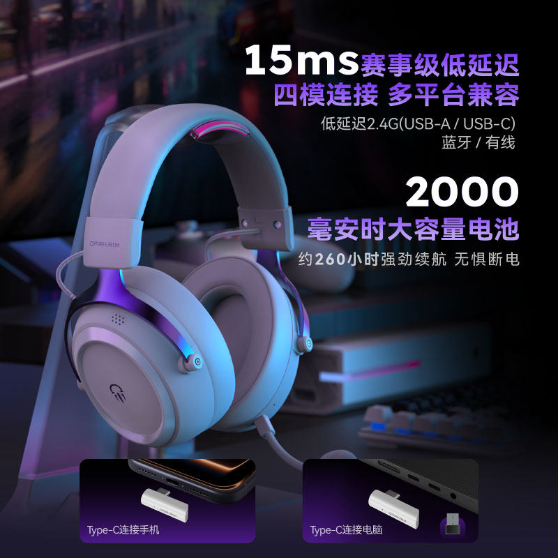 天ROG破风头戴式耳机游戏电竞无线有线蓝牙三模可调头带309g轻量化哈曼曲线长续航 玩家国度