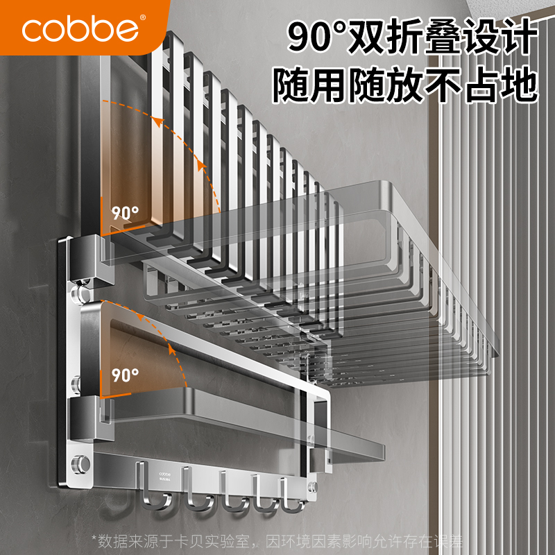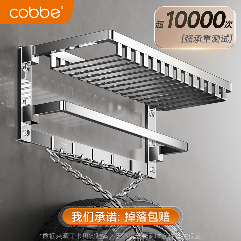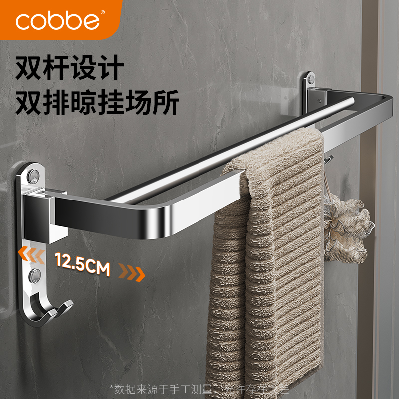 淘宝卡贝304不锈钢毛巾架卫生间浴巾架浴室置物架厕所可折叠五金挂件