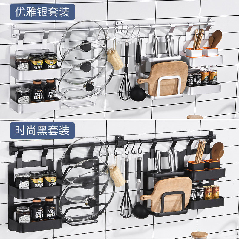 淘太空铝多功能免打孔厨房挂钩壁挂置物架厨卫收纳挂件排钩锅铲钩
