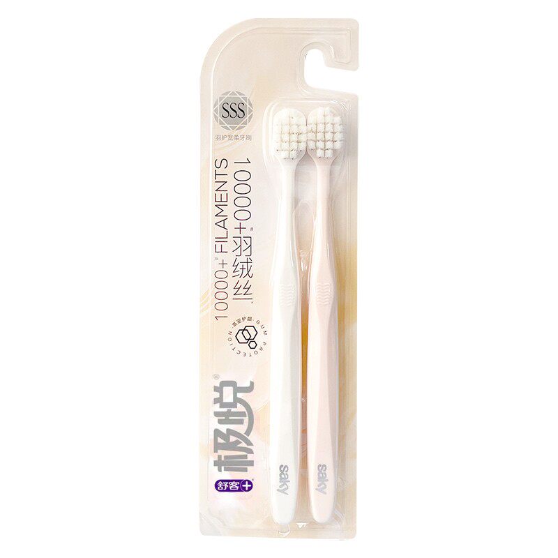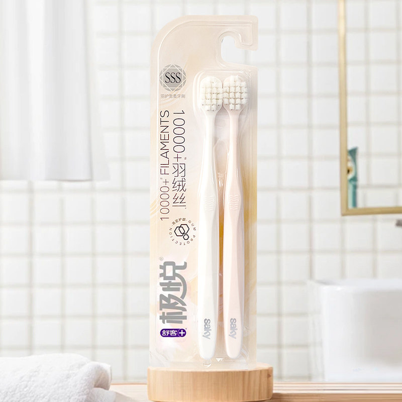 淘宝舒客万毛羽绒丝牙刷2支装高密宽头成人口腔清洁软毛护龈家用组合
