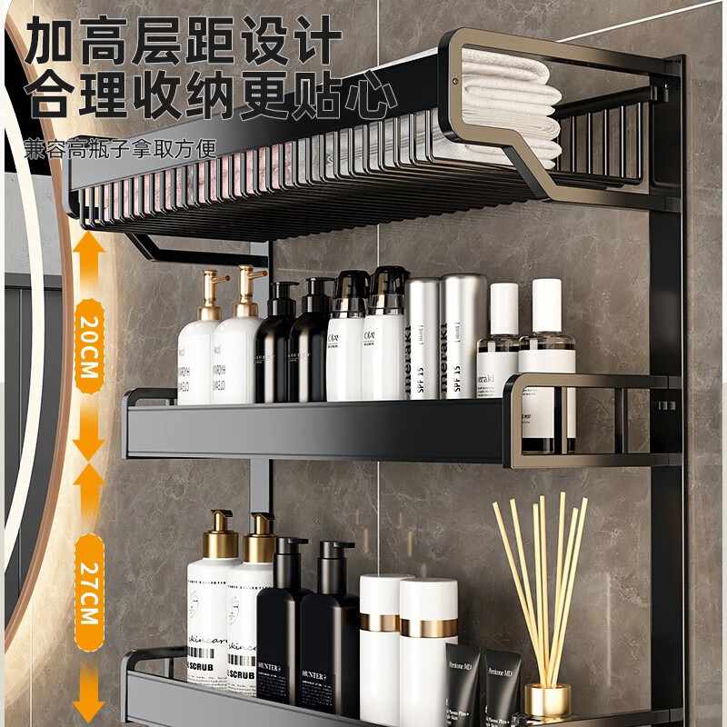 淘宝卫生间置物架毛巾架免打孔浴室架浴巾太空厨卫铝洗手间厕所挂件