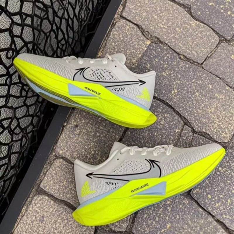 NIKE耐克男ZOOMX VAPORFLY NEXT% 3(货号:HQ3450-147)是一款专为竞速与长距离训练打造的高性能跑步鞋。搭载革新性ZOOMX泡棉中底,结合全掌碳纤维板,提供卓越能量回弹与推进力,助力跑者突破极限。鞋面采用轻质透气工程网布,贴合脚型,增强包裹性与舒适感。流线型设计融合速度与美感,适合追求PB的进阶跑者及专业运动员。无论是马拉松比赛还是高强度训练,VAPORFLY NEXT% 3都能带来轻盈、迅捷的奔跑体验,是竞速跑鞋领域的标杆之作。
