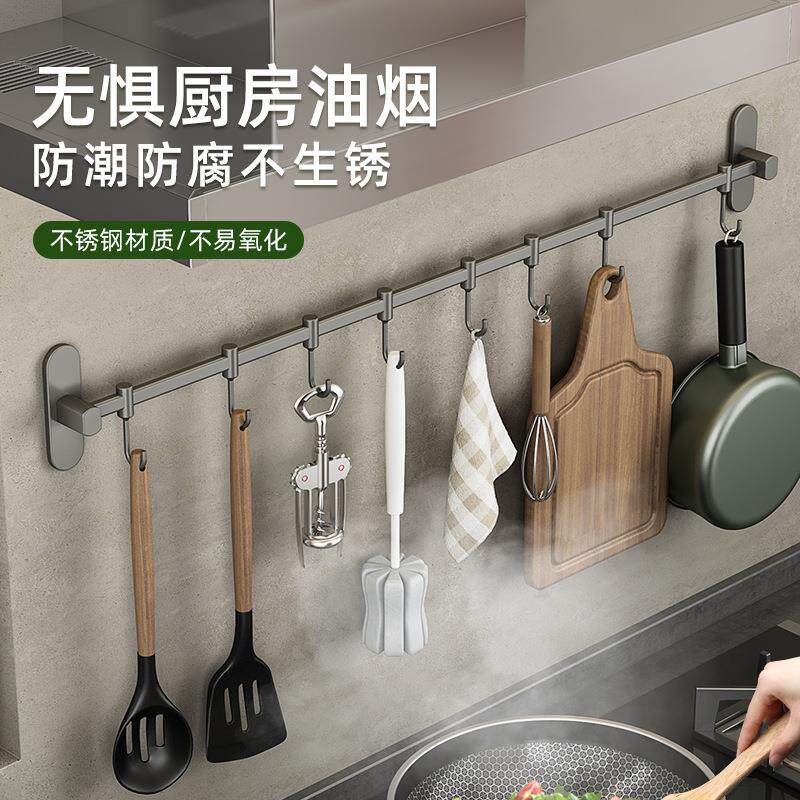 淘宝厨房挂钩免打孔不锈钢壁挂式厨具收纳架置物架 厨卫活动挂件排钩