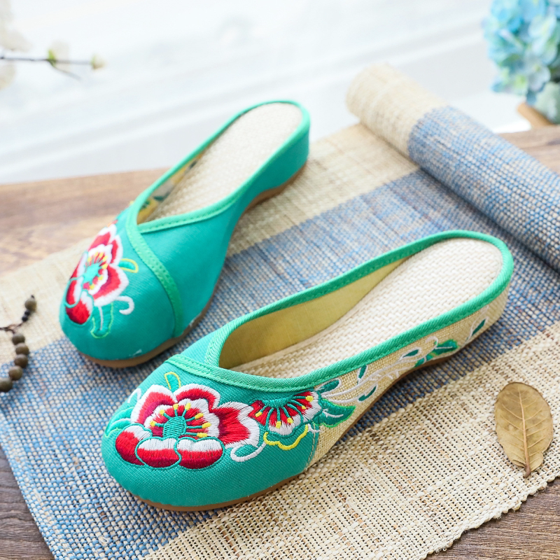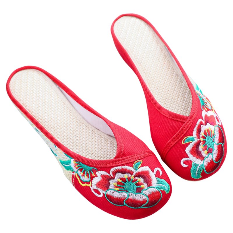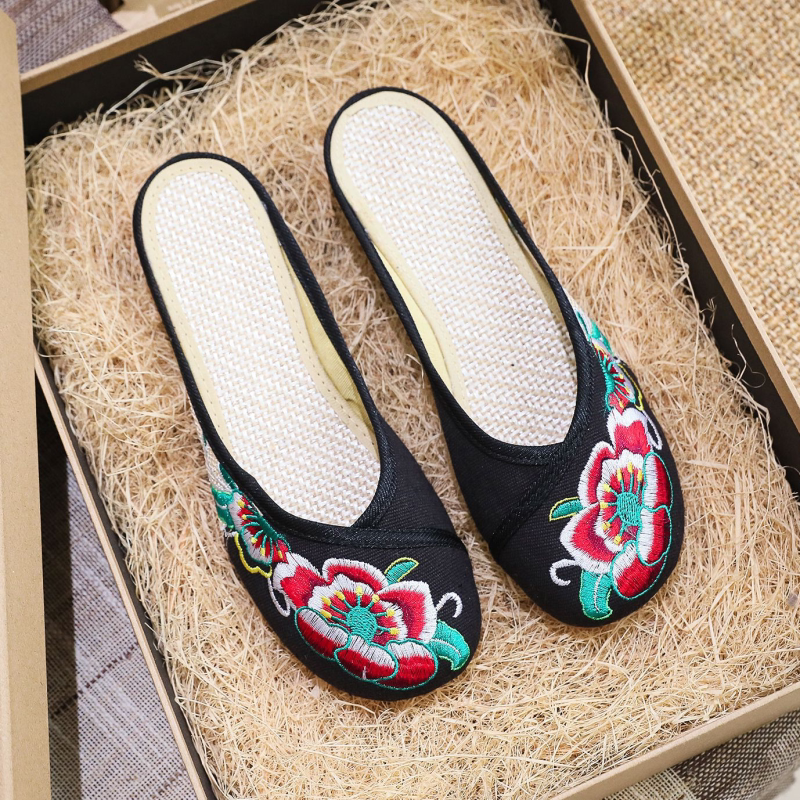 淘宝老北京布鞋女拖鞋外穿民族风绣花圆头坡跟牛筋底复古搭配汉服家居