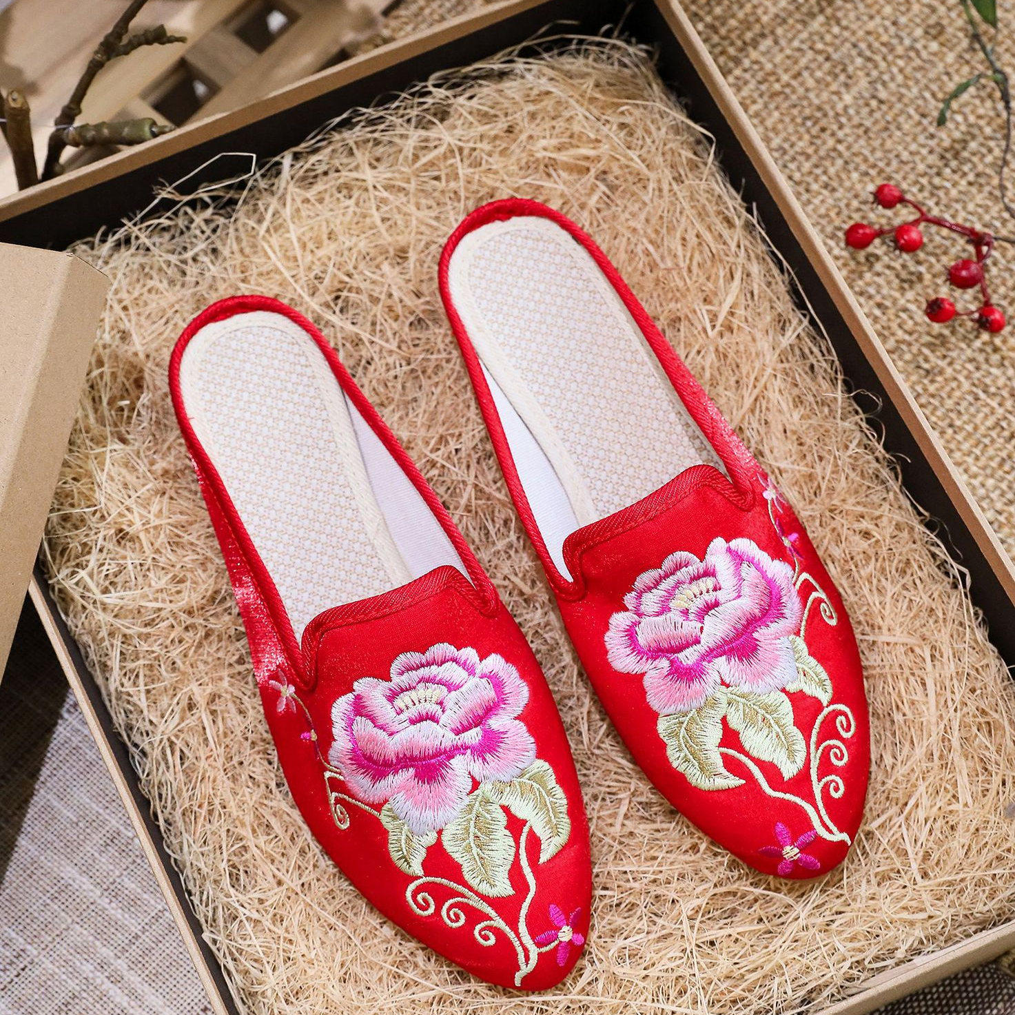 淘绣花女拖鞋软底防滑透气民族圆头春秋吸汗舒适新款中国风老北京