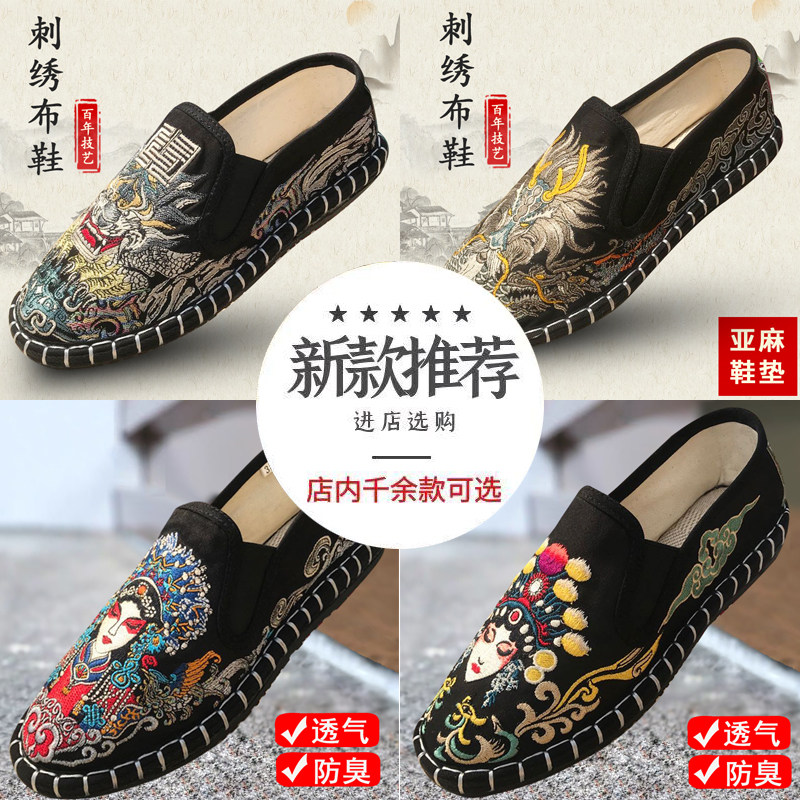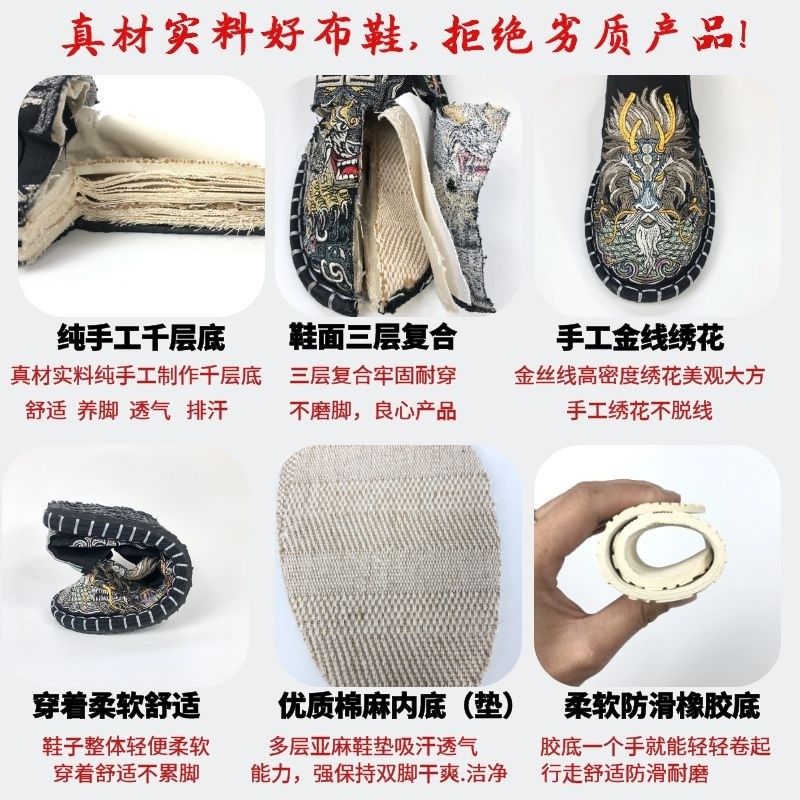 淘宝老北京中国风绣花布鞋刺绣布仆工艺男女休闲防臭手工千层底软底鞋