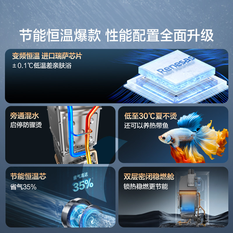 万和家用新品“小宇宙”天然气13升燃气热水器BE1,集节能、恒温、防冻于一体,专为现代家庭设计。采用高效燃烧技术与智能恒温系统,精准控温±0.5℃,告别水温波动,沐浴更舒适。搭载防冻保护功能,严寒天气下也能稳定运行,使用更安心。13升大水量设计,满足多口之家连续用水需求。内置多重安全保护,包括防干烧、防超压、熄火保护等,守护全家安全。外观简约时尚,操作便捷,支持智能分段燃烧,节能省气高达20%。万和BE1以卓越性能与贴心设计,重新定义家庭热水体验,是提升生活品质的优选之作。