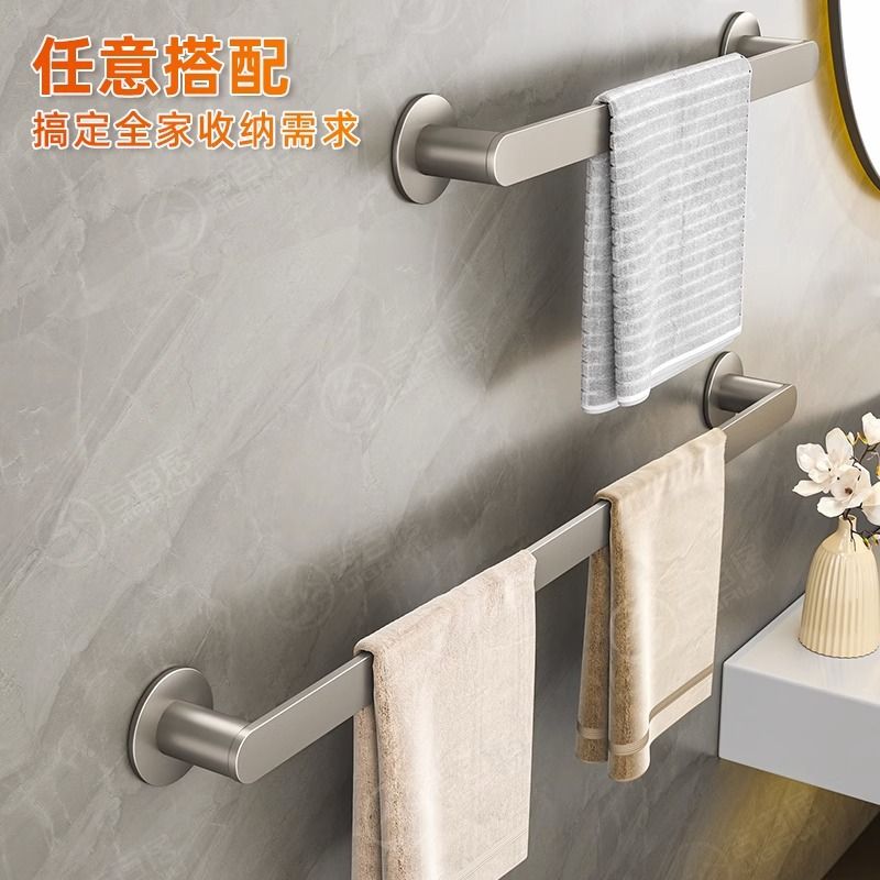 淘宝厂家供应浴室免打孔壁挂式杆挂毛巾架杆杆太空厨卫单挂件毛巾铝