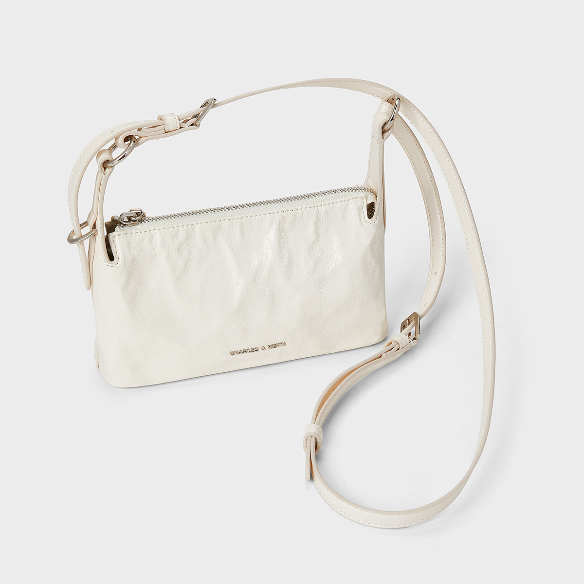 天猫CHARLES&KEITH春夏女包CK2-80160183褶皱油蜡皮单肩腋下小方包女
