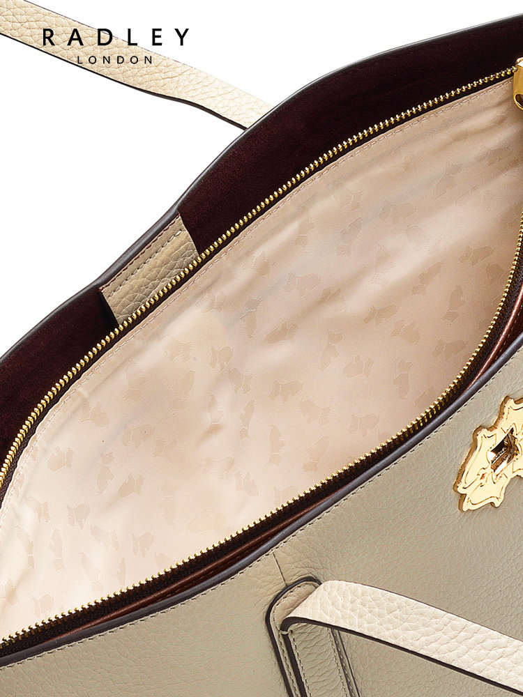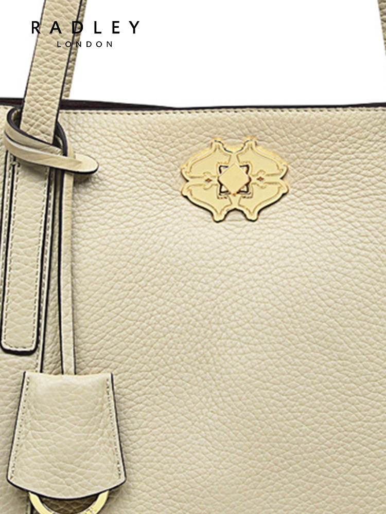 天猫Radley英国奢品米色牛皮托特包单肩女包简约荔枝纹理通勤出差23SS