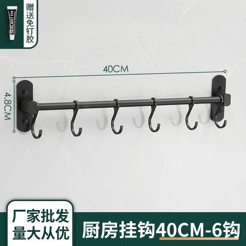 淘厨房挂钩免打孔太空铝壁挂式厨具收纳架置物架 厨卫活动挂件排钩