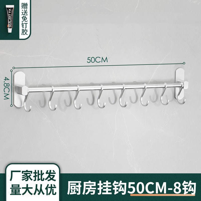淘宝厨房挂钩免打孔太空铝壁挂式厨具收纳架置物架 厨卫活动挂件排钩