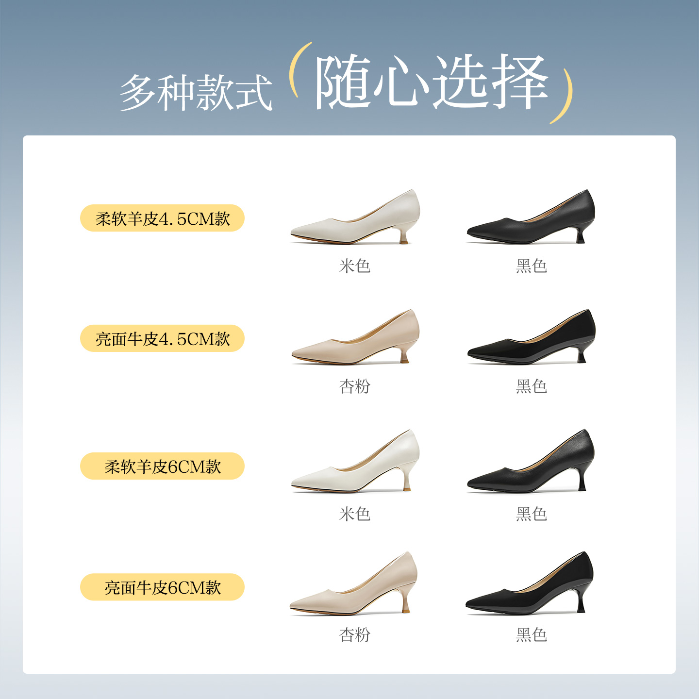 KISSCAT接吻猫[繁花]高跟鞋25新款真皮黑色高级浅口单鞋尖头婚鞋