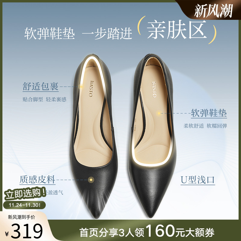 天猫【精致主义】百思图25秋新款尖头白色裸色高跟鞋羊皮婚鞋女单鞋