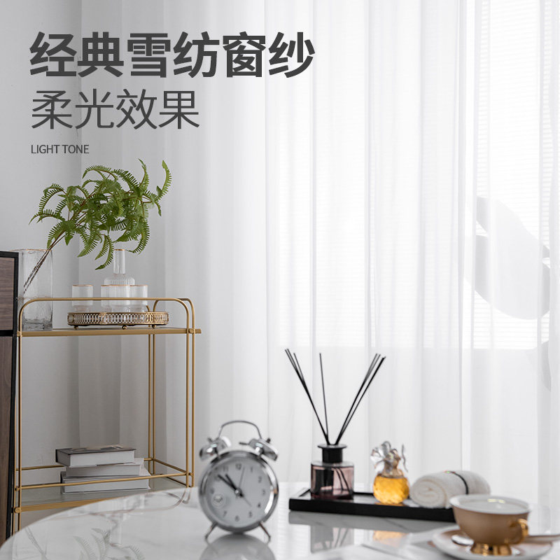 淘天丝绒窗帘透光不透人白纱纱帘北欧简约隔断橱窗轻奢梦幻雪纺窗纱