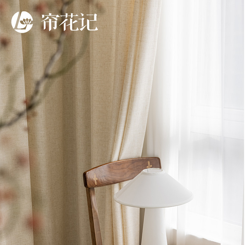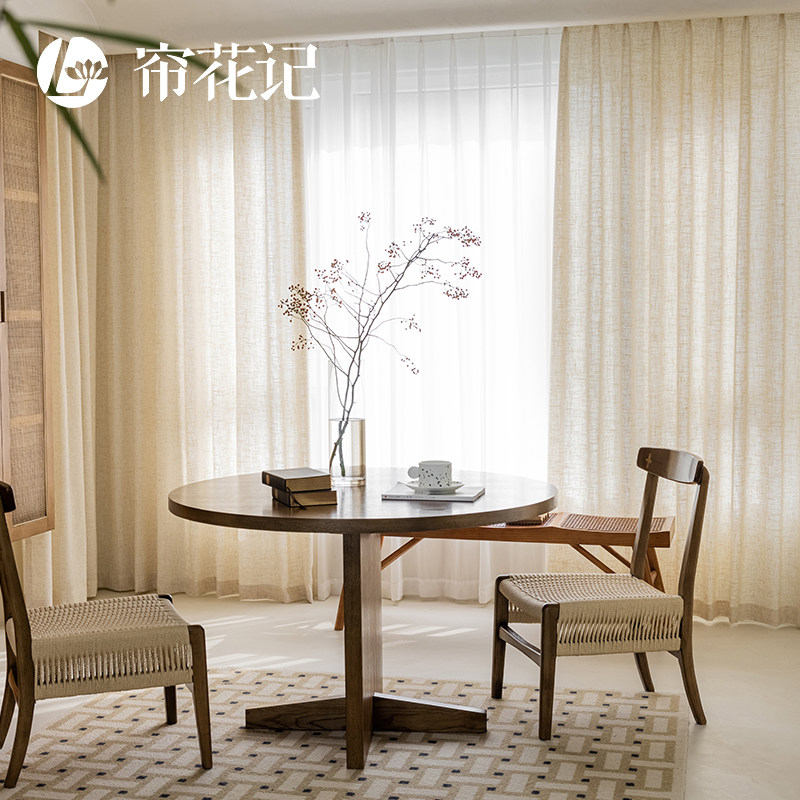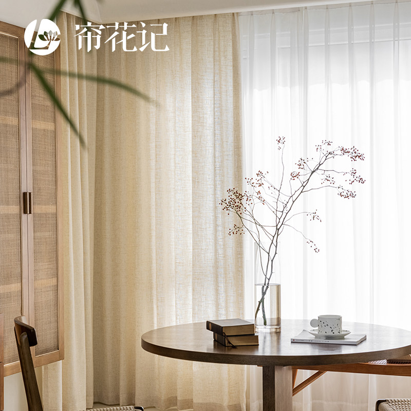 淘宝苎麻亚麻窗帘纱北欧日式新中式简约挂钩式客厅窗纱透光不透人新款