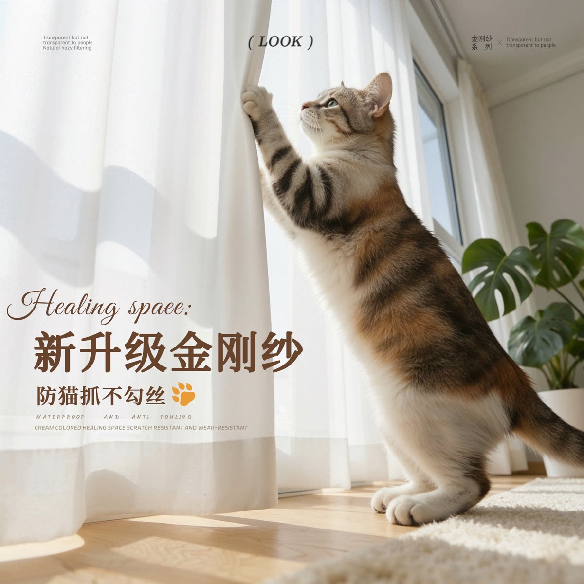 金刚纱窗帘白色纱帘薄纱透光不透人隔热防晒客厅阳台飘窗窗纱定制