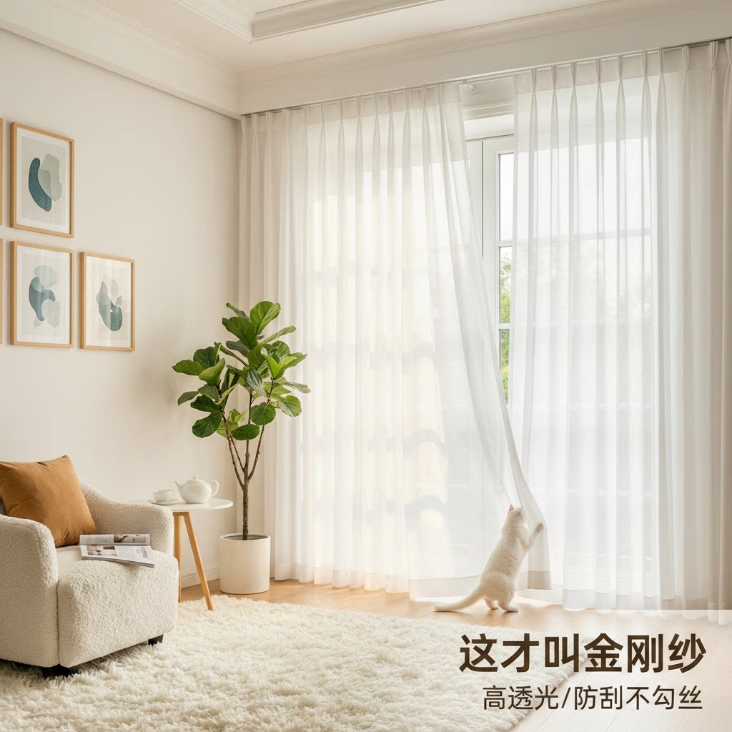 天猫金刚纱纱帘幻影纱窗纱白色纱飘窗透光不透人2026新款窗帘绍兴柯桥
