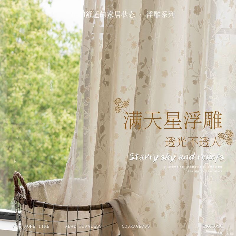 淘小雏菊窗纱2025款透光不透人窗帘卧室民宿田园风清新纱帘窗帘阳台