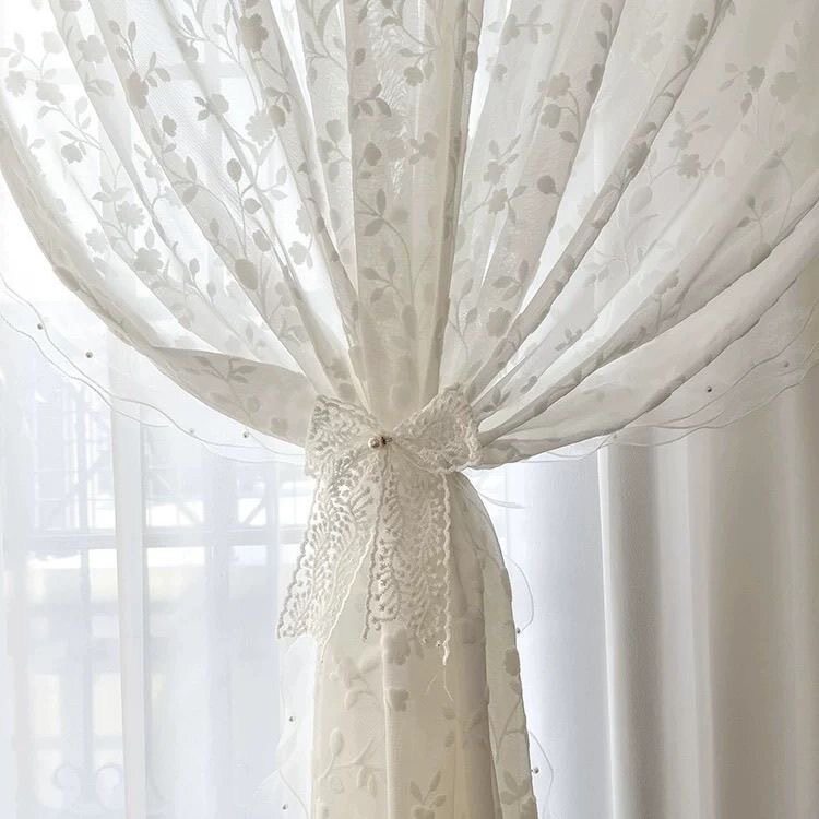 LACESHABBY新款轻奢复古浮雕绣花蕾丝百褶小清新窗纱半帘门帘窗帘