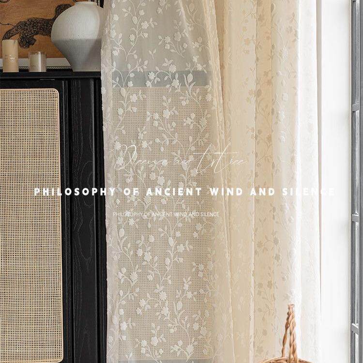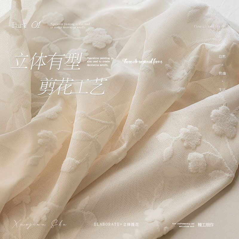 淘宝法式浪漫美式复古重工浮雕窗纱花边窗纱帘半遮光隔断纱 米色/白色