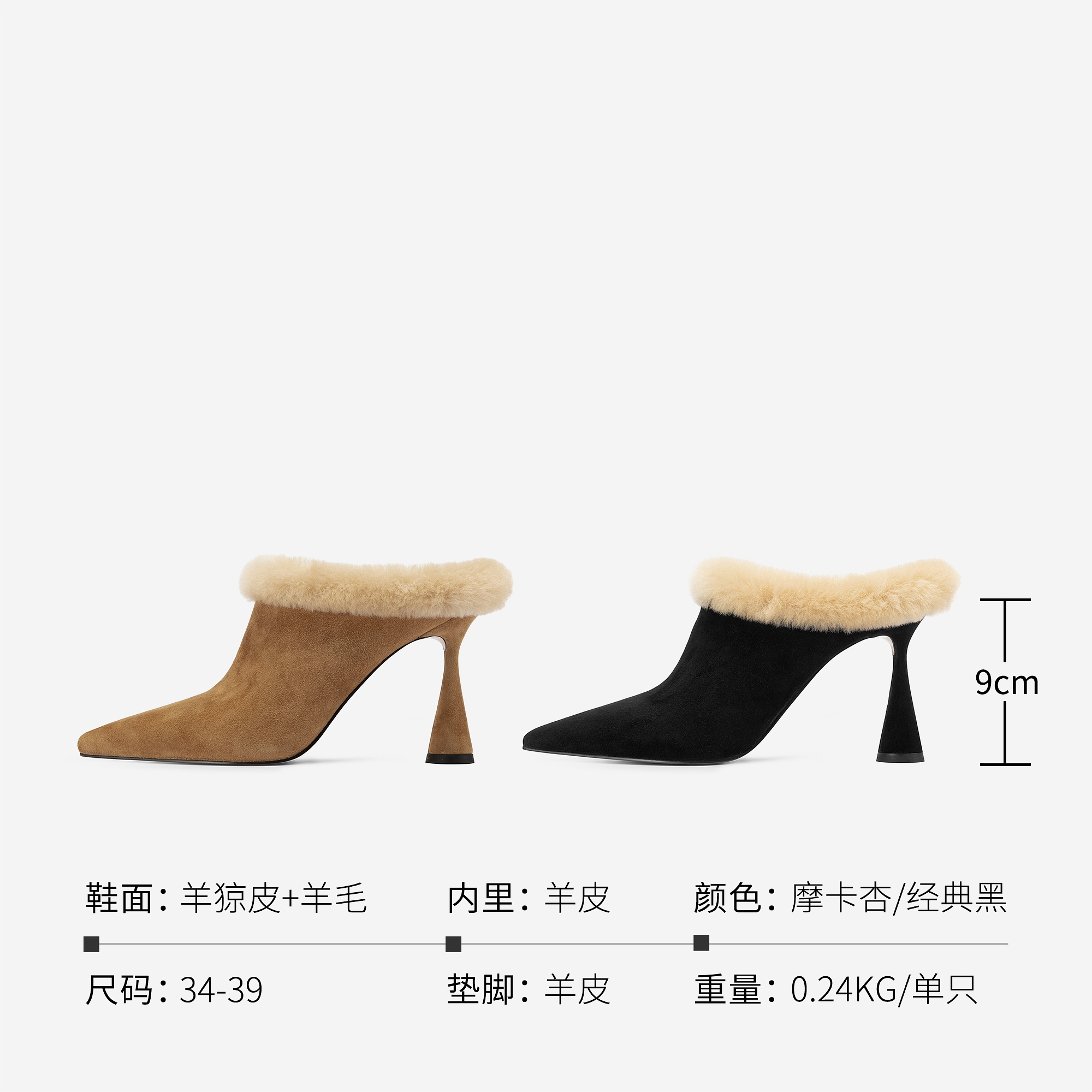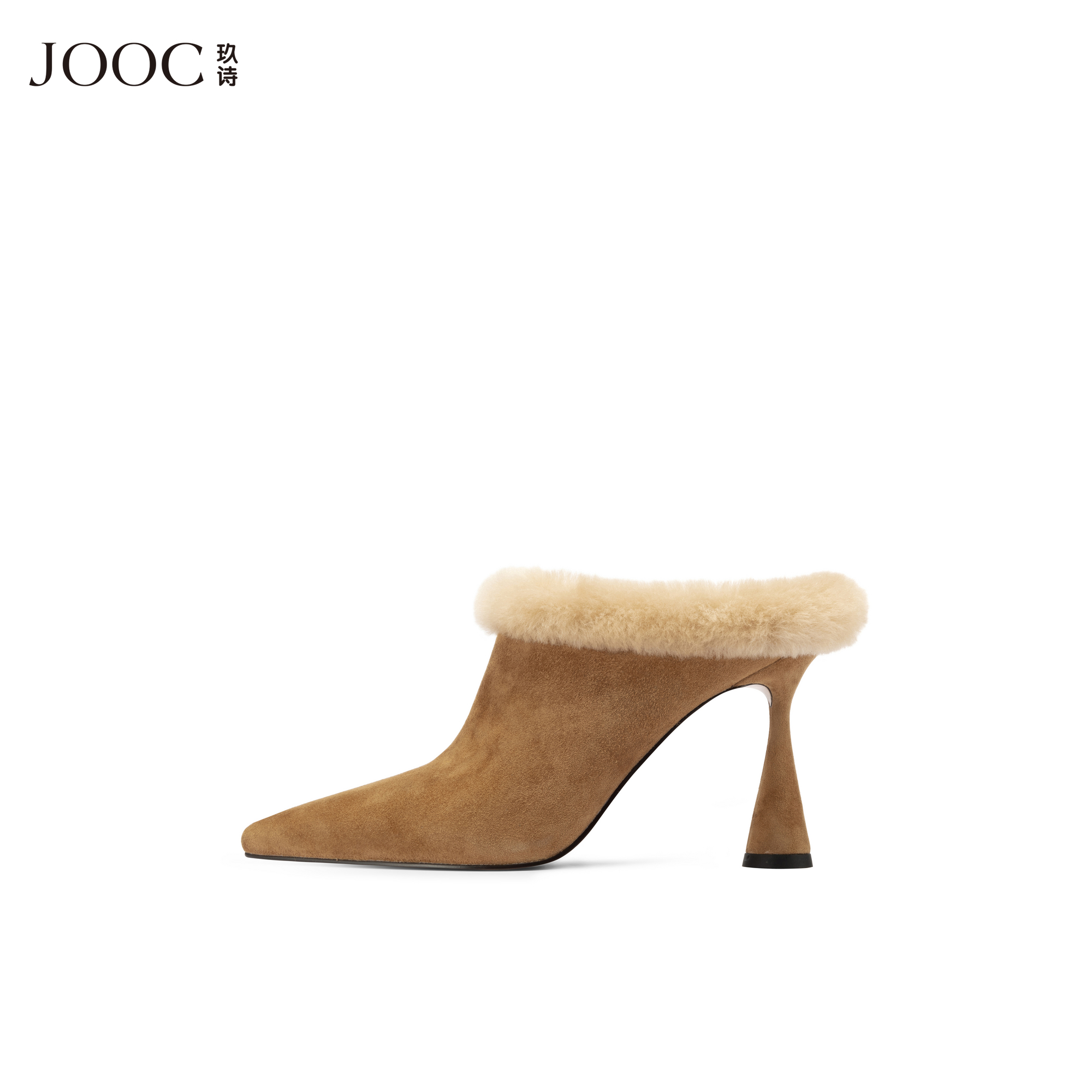天猫【午后轻奢】JOOC玖诗包头高跟鞋女2025秋冬新款时尚羊毛后空单鞋