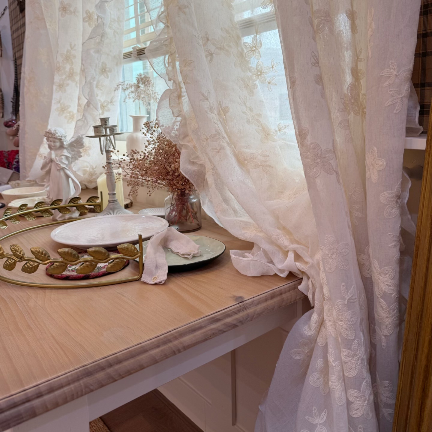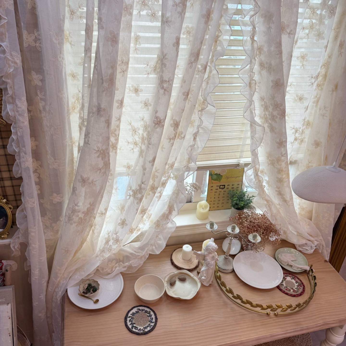 淘LACESHABBY新款轻奢复古浮雕绣花蕾丝百褶小清新窗纱半帘门帘窗帘
