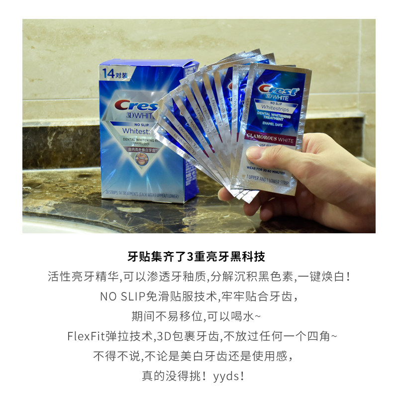 淘宝crest佳洁士美白牙贴3d white炫白牙齿锁白去黄洁白贴牙膜黄牙贴