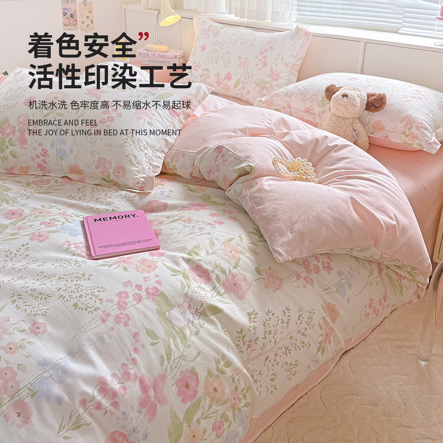天猫红豆纯棉床上四件套100全棉2026新款床单被套宿舍三件套四季通用4