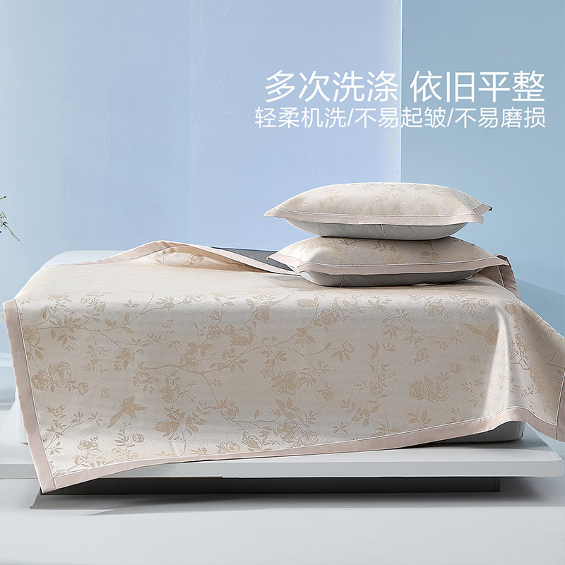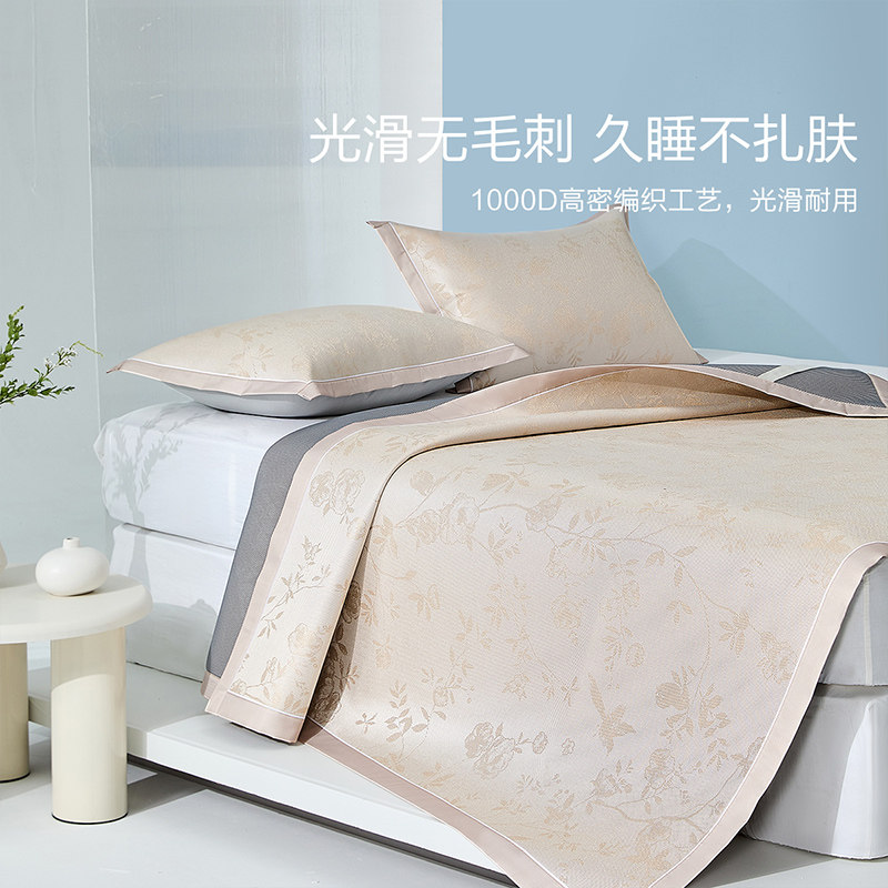水星家纺2026年新品凉席,精选优质冰藤材质,结合精致提花工艺,触感细腻顺滑,带来清凉舒爽的夏日体验。席面采用抑菌科技处理,有效抑制细菌滋生,呵护家人健康。可水洗设计,清洁便捷,不易变形,持久耐用。独特的凉感纤维,即使在空调房内也能保持舒适体感,避免过凉不适。透气性佳,排湿散热,整夜干爽不粘身。简约雅致的提花图案,提升家居格调,适配多种卧室风格。水星家纺凉席,以匠心品质守护您的每一夜安眠,是夏季床品的理想之选。