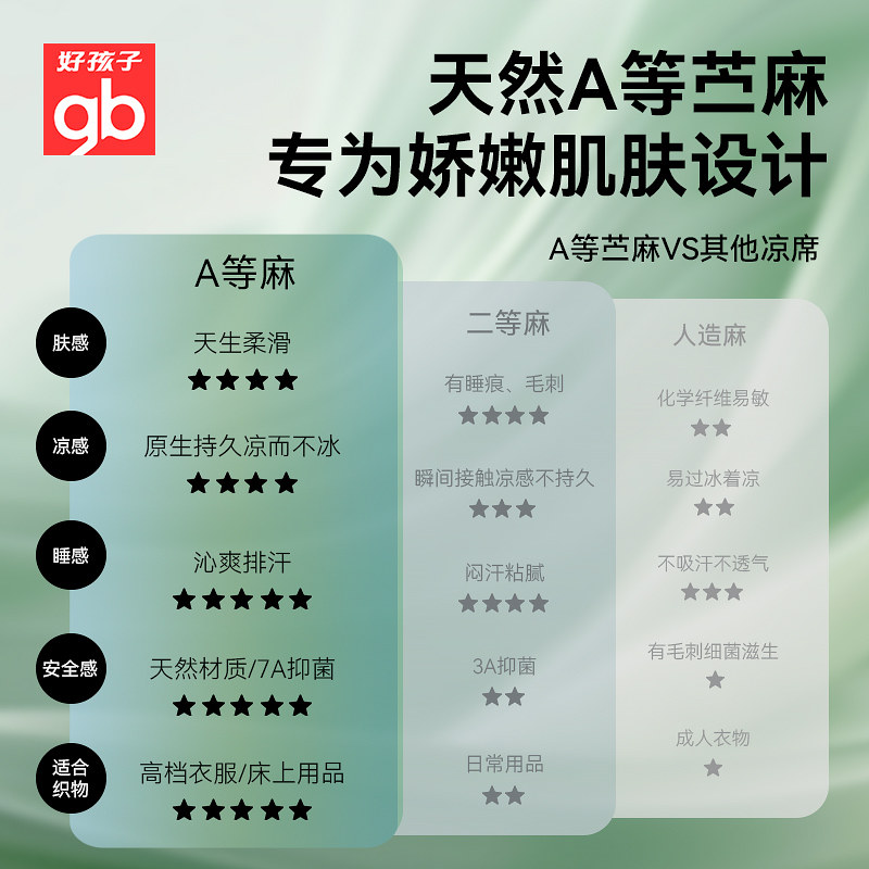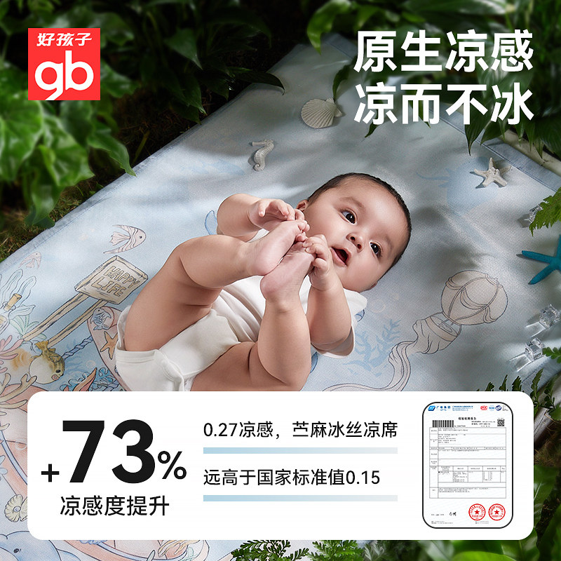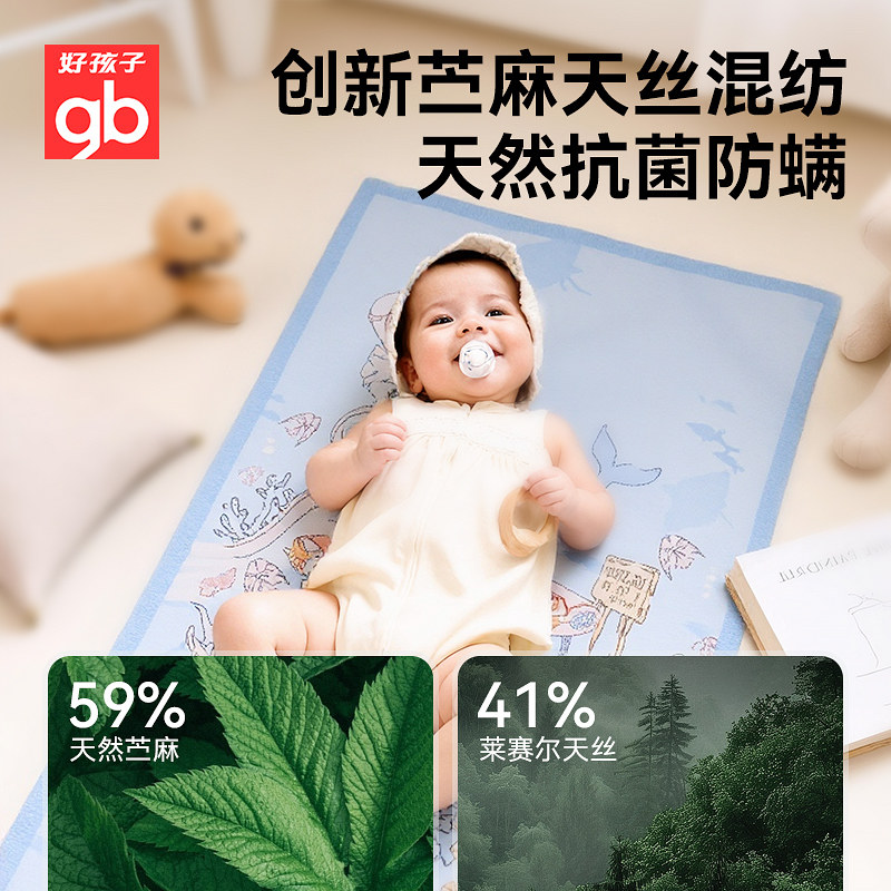 天猫gb好孩子婴儿幼儿园午睡床凉席夏季软凉席宝宝专用苎麻席透气凉垫