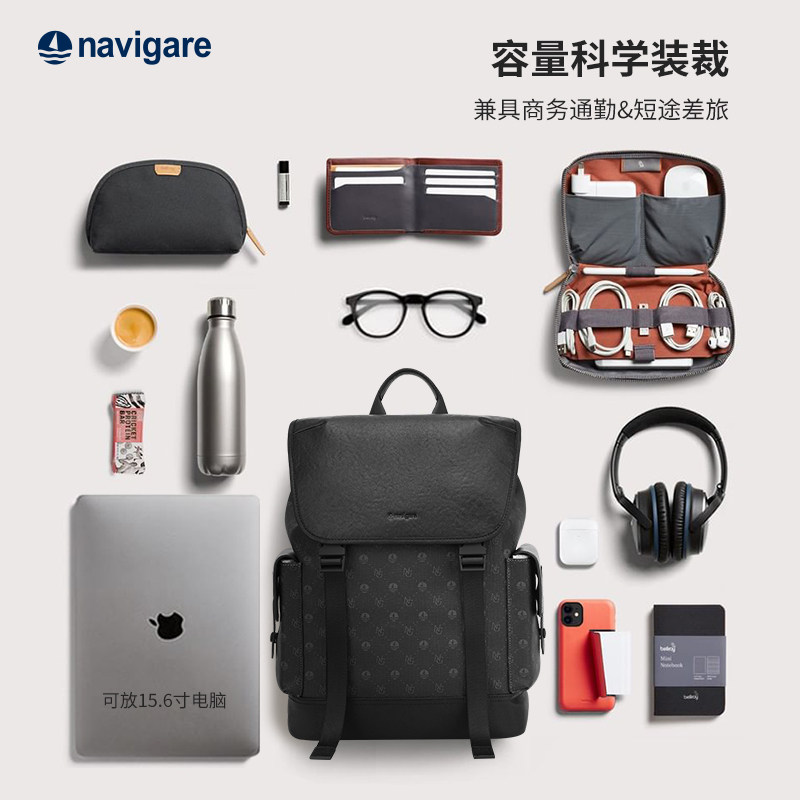 天猫Navigare纳维凯尔意大利小帆船双肩包男电脑书包旅行商务通勤背包